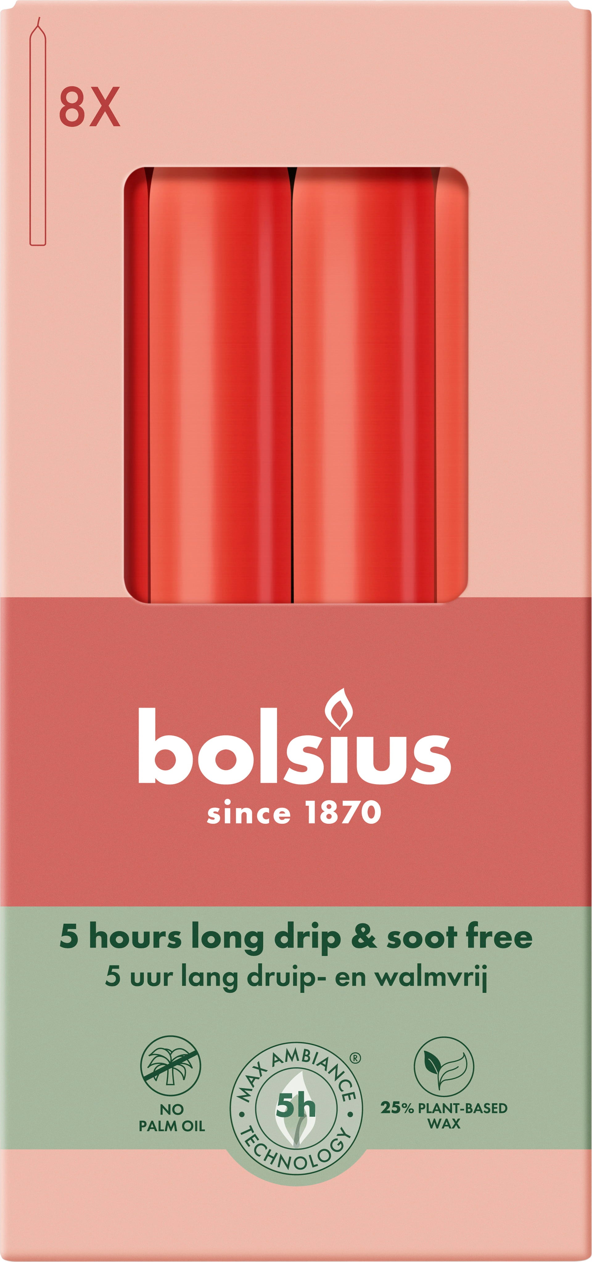bolsius Essentials Stabkerzen (8 Stk.), Zartes Rot
