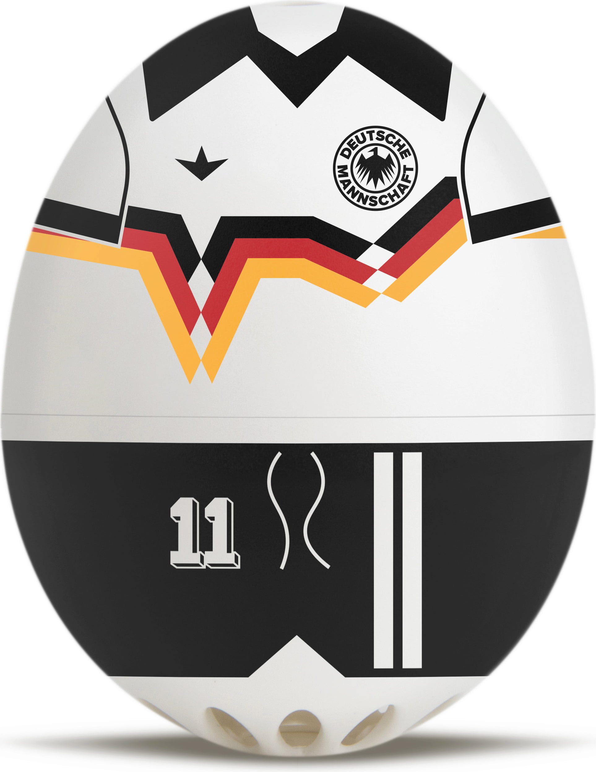 Durch das sportliche Design, das unverkennbar an das legendäre Trikot der Nationalmannschaft erinnert, zieht echte Stadion-Atmosphäre direkt in den Kochtopf ein.