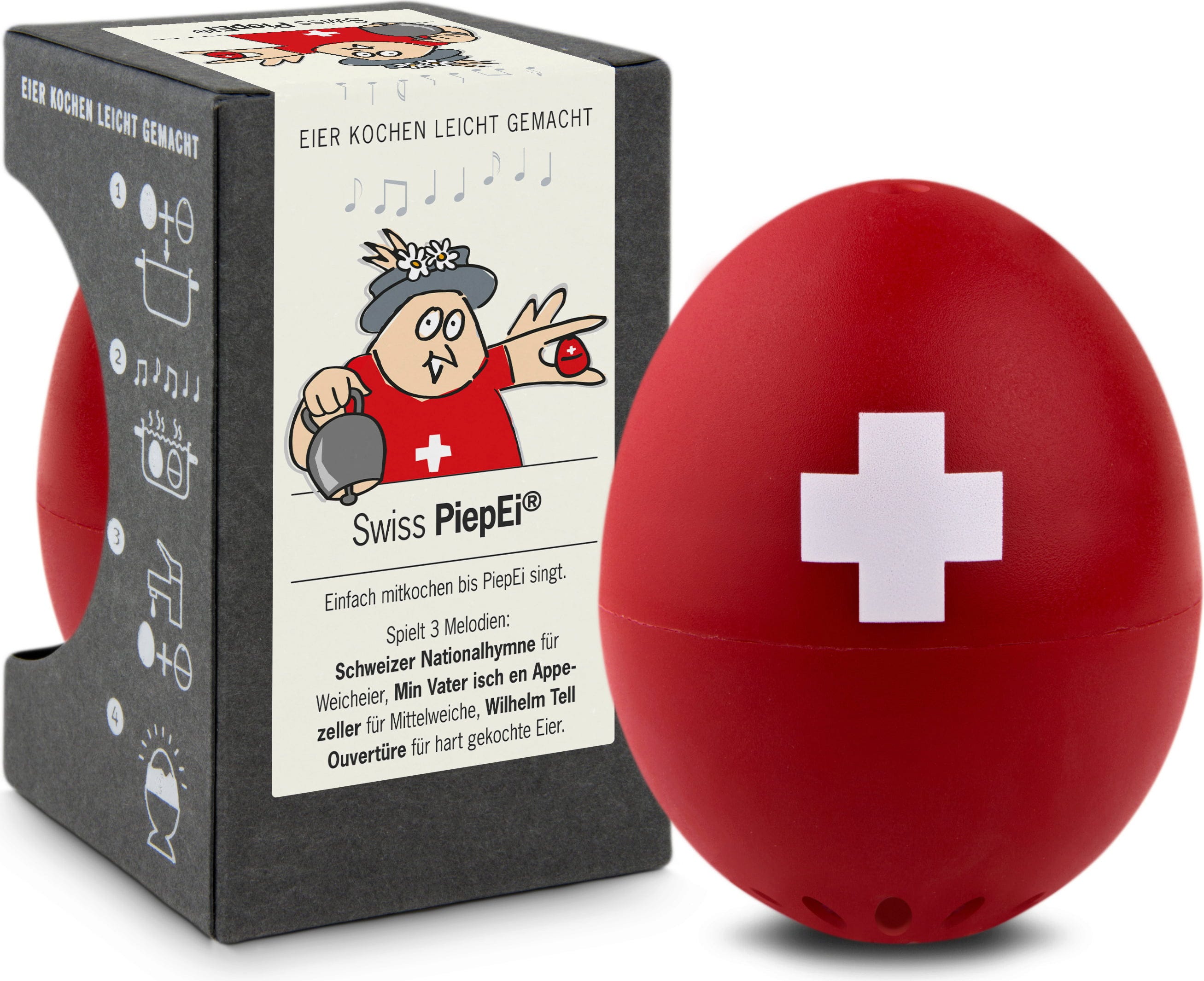 Man kennt es – gekochte Eier sind eine Wissenschaft für sich: Mal ist das Ei zu hart, mal ist das Ei zu weich. Das Swiss PiepEi von Brainstream ist der ideale Assistent zu deinem perfekt gekochten Ei.