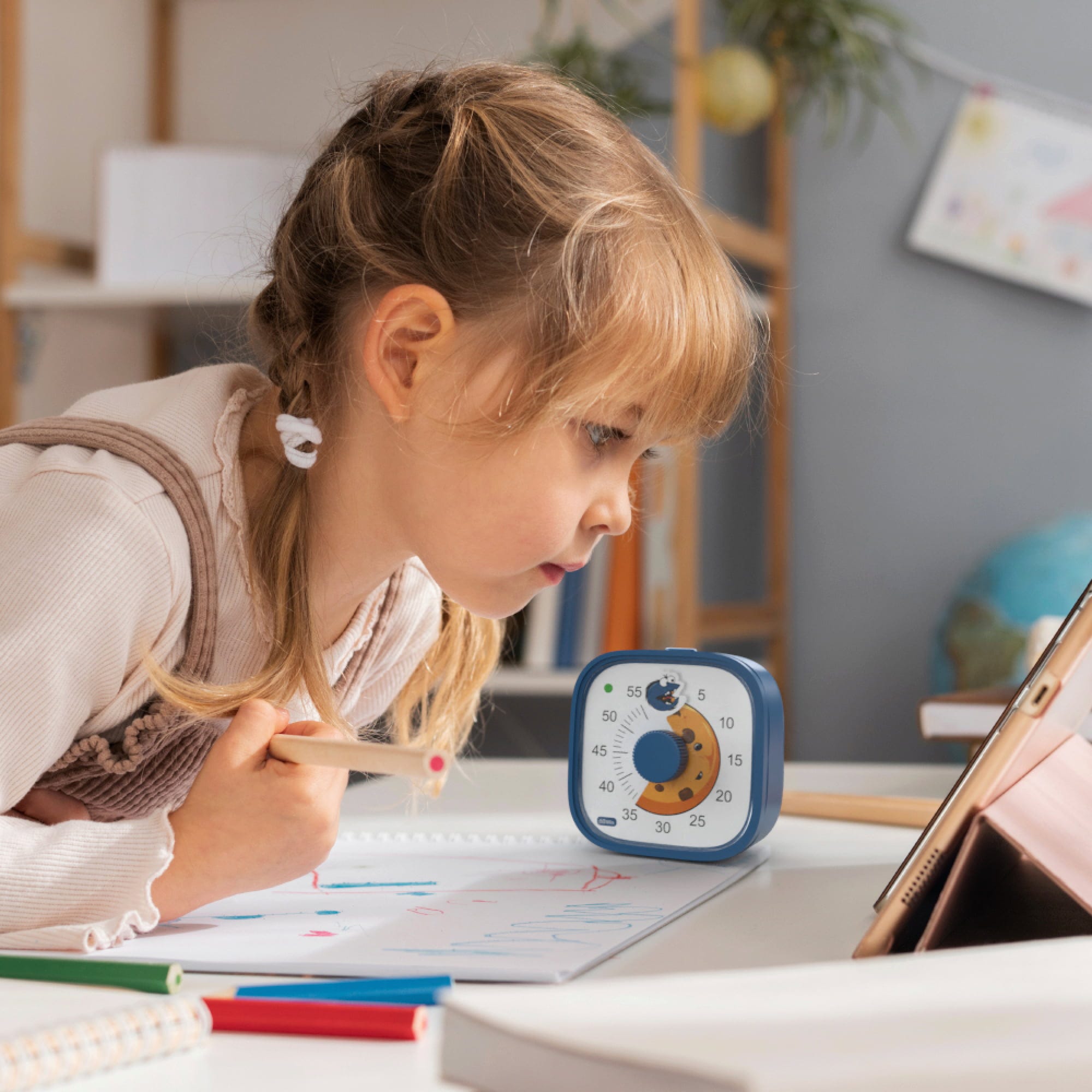 Mach Zeitmanagement zum Kinderspiel und bring Struktur in euren Alltag. Mit dem Visual Timer wird das abstrakte Thema Zeit endlich greifbar: Durch einfaches Drehen des Knopfes stellst du die gewünschte Dauer bis zu 60 Minuten ein. Die farbige Scheibe verschwindet im Zeitverlauf kontinuierlich, sodass Kinder und Erwachsene sofort visualisieren können, wie viel Zeit noch für Hausaufgaben, Spielpausen oder die Screentime bleibt.