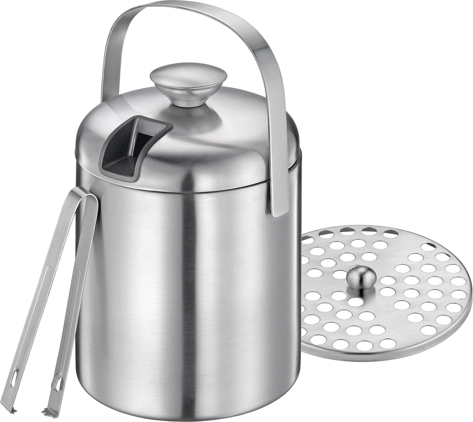 Der Eiseimer FREDDO ist der ideale Begleiter für lange Abende auf der Terrasse oder festliche Anlässe im Wohnzimmer. Seine doppelwandige Konstruktion aus Edelstahl garantiert, dass Eiswürfel über Stunden gefroren bleiben. Dank dem herausnehmbaren Gitter im Boden liegen die Würfel nicht im Schmelzwasser und behalten ihre Form deutlich länger. Die praktische Zange kann platzsparend im Deckel verstaut werden.
