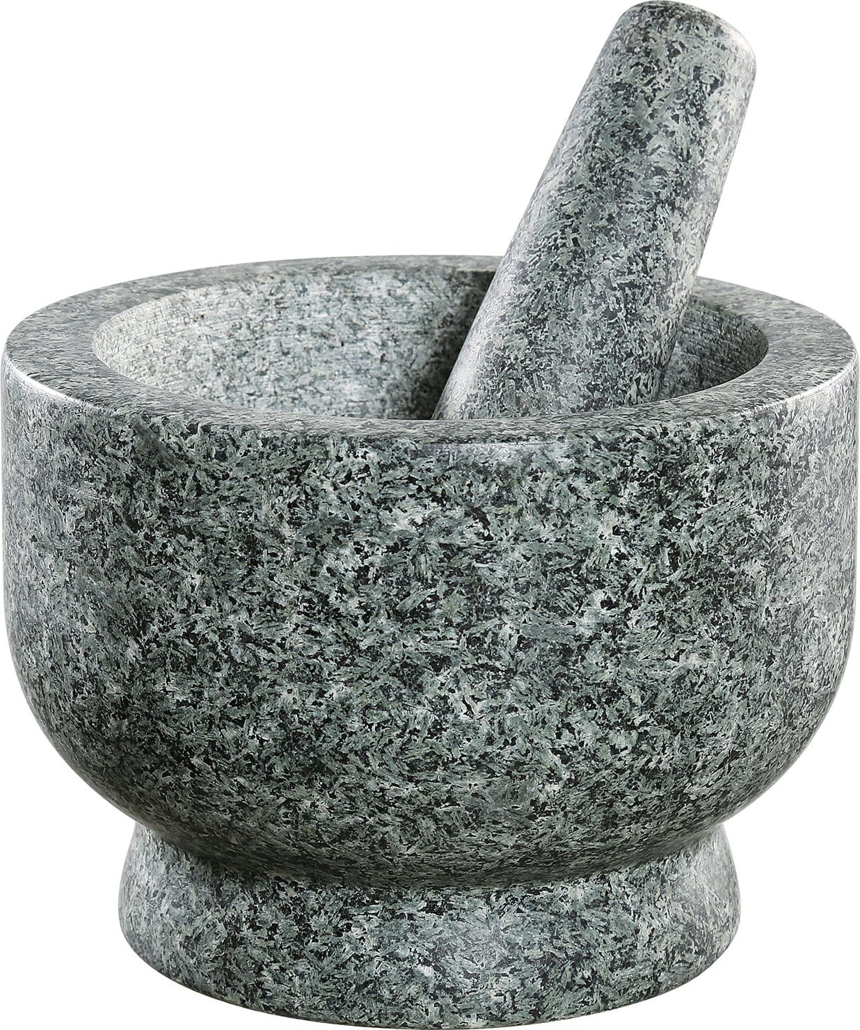Tipp: Nach dem Gebrauch empfiehlt es sich, den Mörser lediglich mit warmem Wasser und ggf. einer Bürste zu reinigen, um die natürliche Oberfläche des Granits zu schonen.