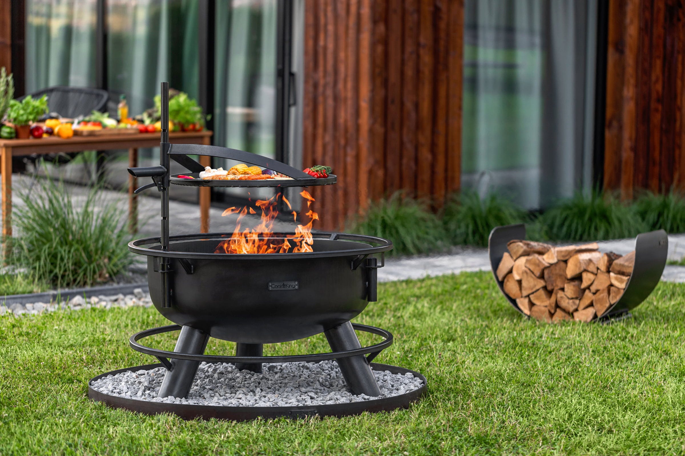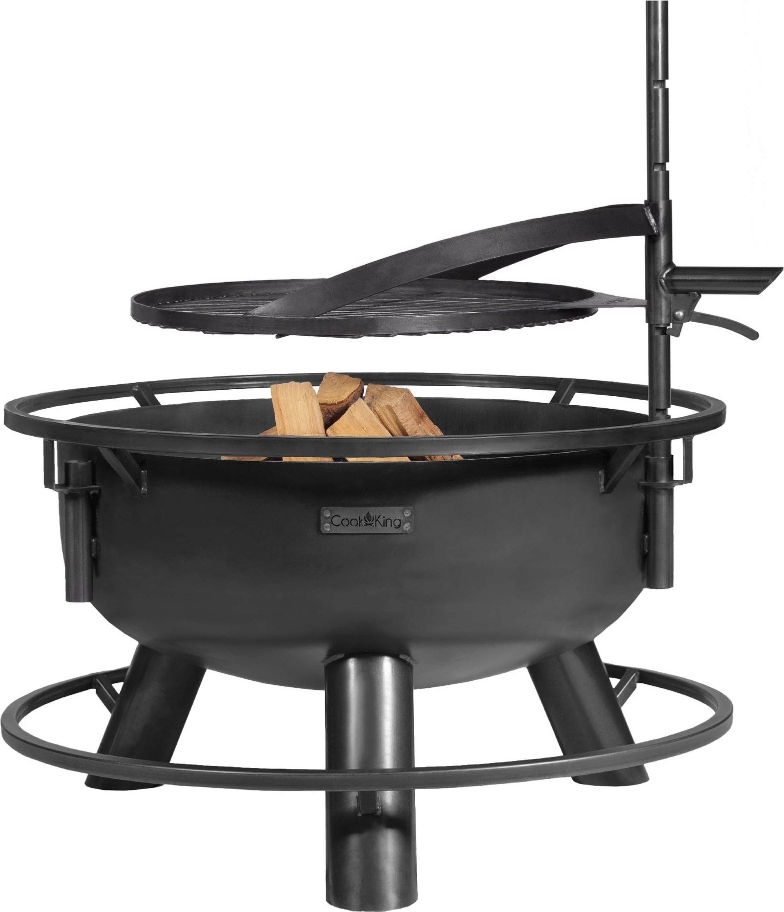Das Besondere an der Bandito ist ihre Wandlungsfähigkeit: Durch den integrierten Befestigungsmast verwandelst du die Schale im Handumdrehen in eine voll funktionsfähige Outdoor-Küche. Der mitgelieferte Grillrost lässt sich stufenlos in der Höhe verstellen, sodass du die Hitze perfekt kontrollieren kannst – ideal für saftige Steaks oder schonend gegartes Gemüse.