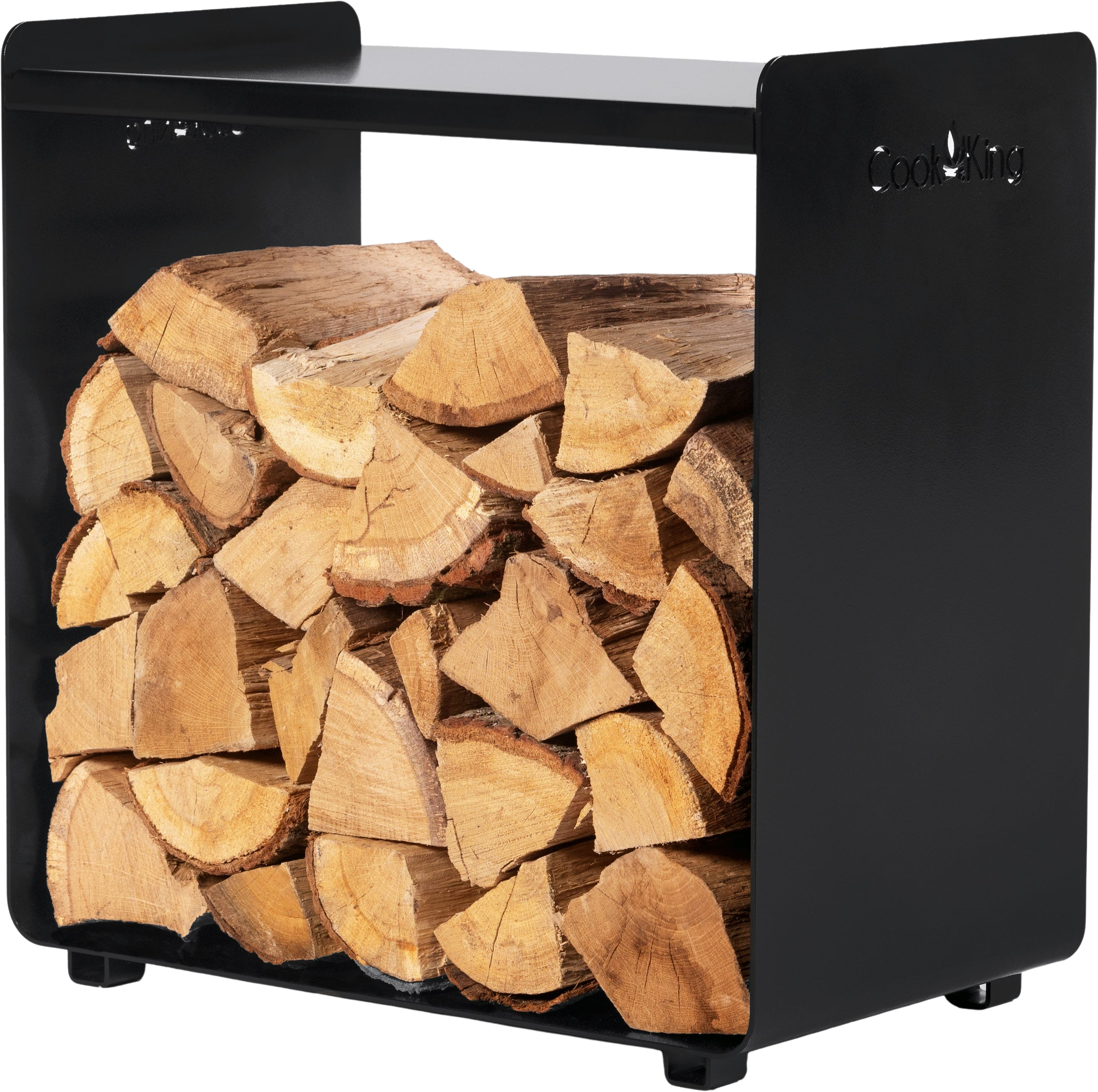 Durch seine kompakten Maße findet es mühelos Platz in kleineren Nischen neben deinem Kamin oder setzt als dezentes Stilelement auf deiner Terrasse Akzente. Die tiefschwarze Pulverbeschichtung verleiht dem handgefertigten Stahlobjekt eine edle Note, die perfekt mit dem rustikalen Charme deines Brennholzes kontrastiert.