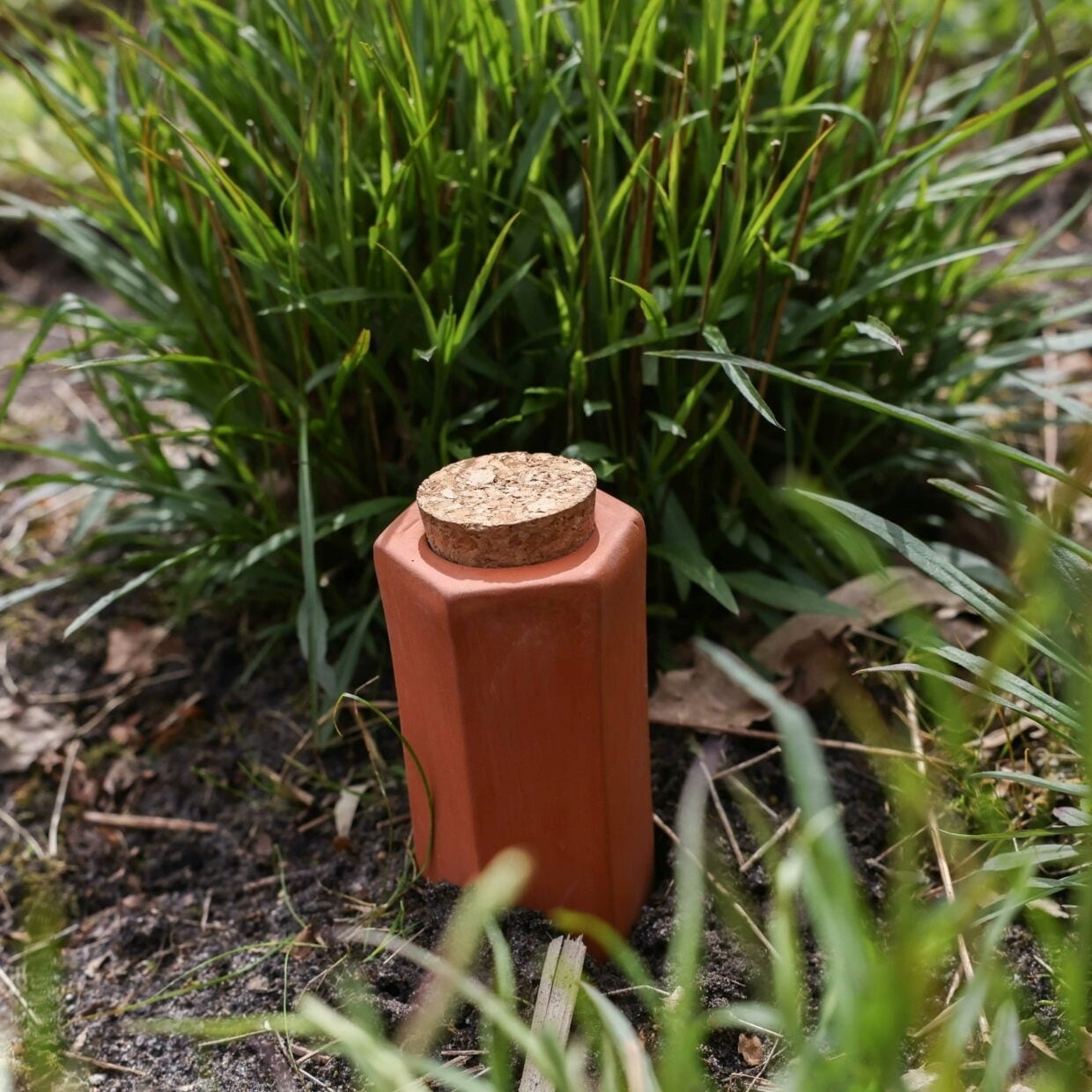 Der Bewässerungszapfen aus natürlichem Terrakotta erspart dir das tägliche Gießen.