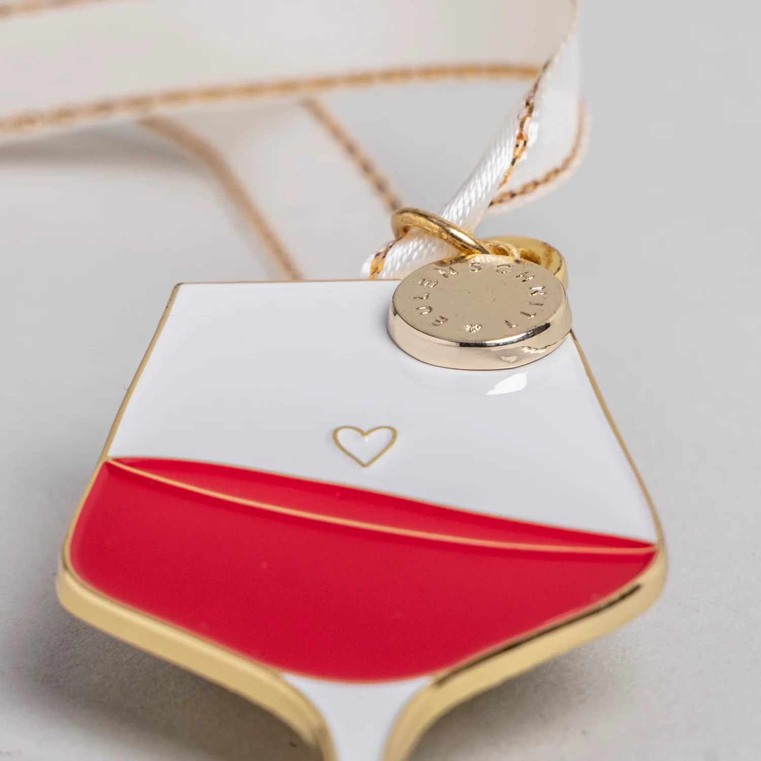 Bringe festliche Gemütlichkeit an deinen Weihnachtsbaum mit dem liebevoll designten Baumanhänger in Form eines Weinglases. Das rote Weinglas besticht durch charmante weiße und goldene Details und sorgt für einen besonderen Hingucker in deiner Weihnachtsdeko. Dank des bereits befestigten Bändchens lässt sich der Anhänger sofort aufhängen.