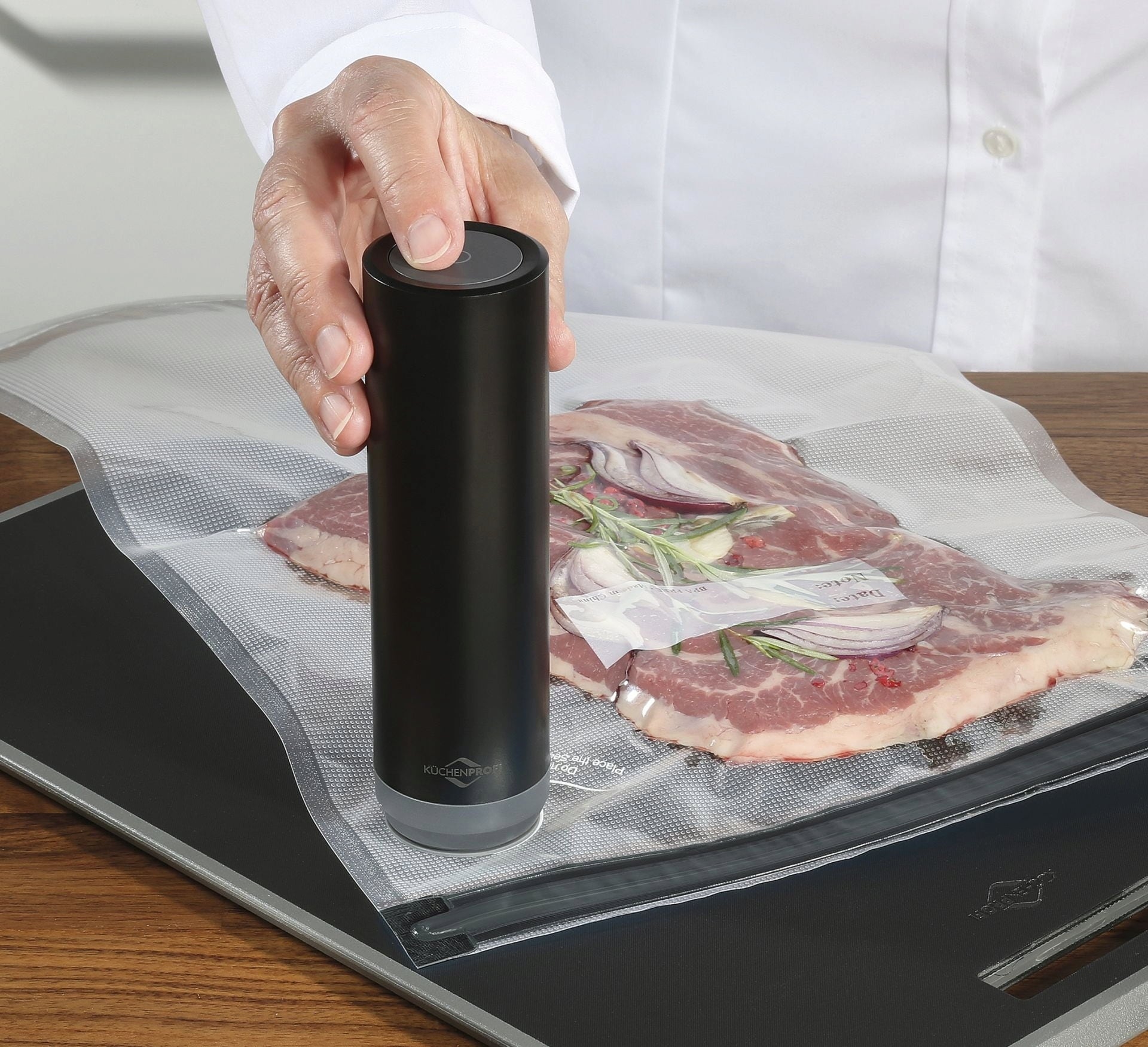 Frische auf Knopfdruck! Mit der elektrischen Vakuumpumpe von Küchenprofi kein Problem und im Handumdrehen erledigt.