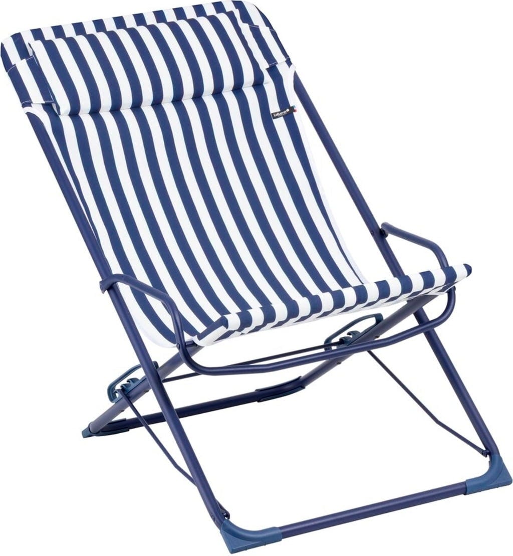 Ob du in geselliger Runde aufrecht sitzen, entspannt schmökern oder dich für ein kurzes Nickerchen ganz ausstrecken möchtest – über das sichere Rastensystem mit praktischer Führungsstange wechselst du fließend zwischen drei Wohlfühlpositionen. Der hochwertige Airlon-Bezug im maritimen Look setzt dabei stilvolle Akzente auf deinem Balkon oder im Garten. Der Sessel lässt sich zudem im Handumdrehen flach zusammenklappen und findet selbst in der kleinsten Nische Platz.