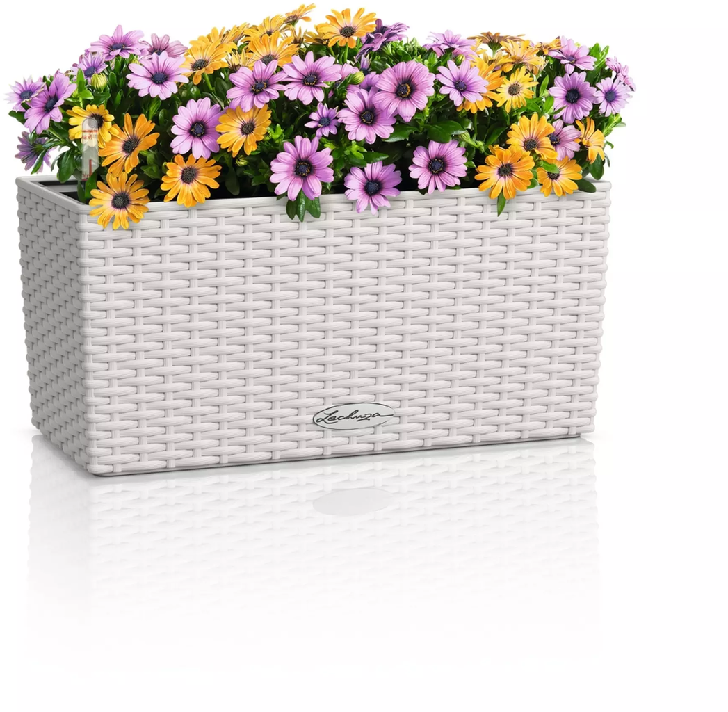 Das elegante Pflanzgefäß "Balconera Cottage" von Lechuza setzt mit seiner attraktiven Oberflächenstruktur Blumen gekonnt in Szene. Darüber hinaus begeistert vor allem mit seinen praktischen Eigenschaften, die jedes Gärtnerherz höher schlagen lassen. Egal ob freistehend platziert oder mit der separat erhältlichen Halterung am Balkongeländer befestigt - ein stilvoller Blickfang ist der aus UV-beständigem Polypropylen gefertigte Pflanzkasten allemal.