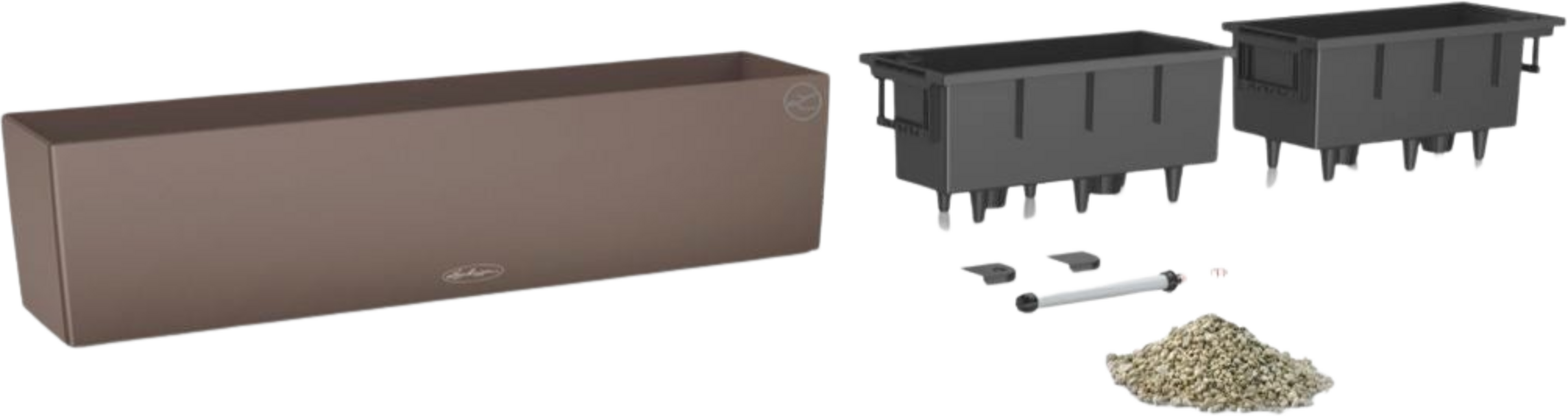 Lieferumfang: Pflanzgefäß, 2 x Pflanzeinsatz, Wasserstandsanzeiger, Granulat