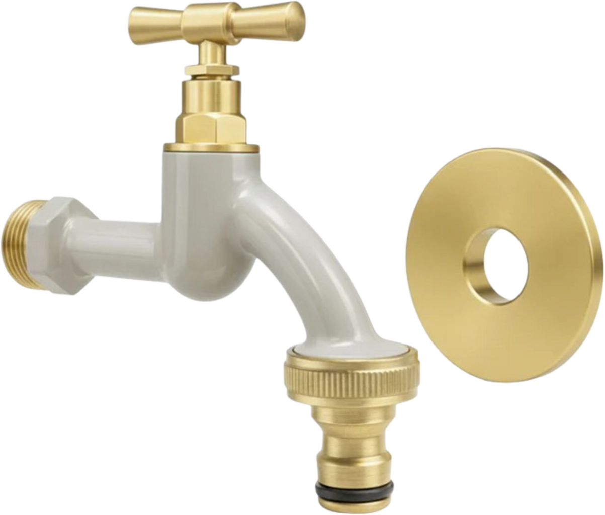 Ergänzt wird das Messing mit einer Pulverbeschichtung, welche dem Wasserhahn nicht nur das gewisse Etwas verleiht, sondern auch eine seidenmatte Haptik. Somit ist der Hahn ein stylisches Element, egal ob im Garten, an der Terrasse, an der Waschküche oder in der Garage. Durch die mitgelieferte Rosettengarnitur entsteht ein schöner und hochwertiger Wandabschluss.