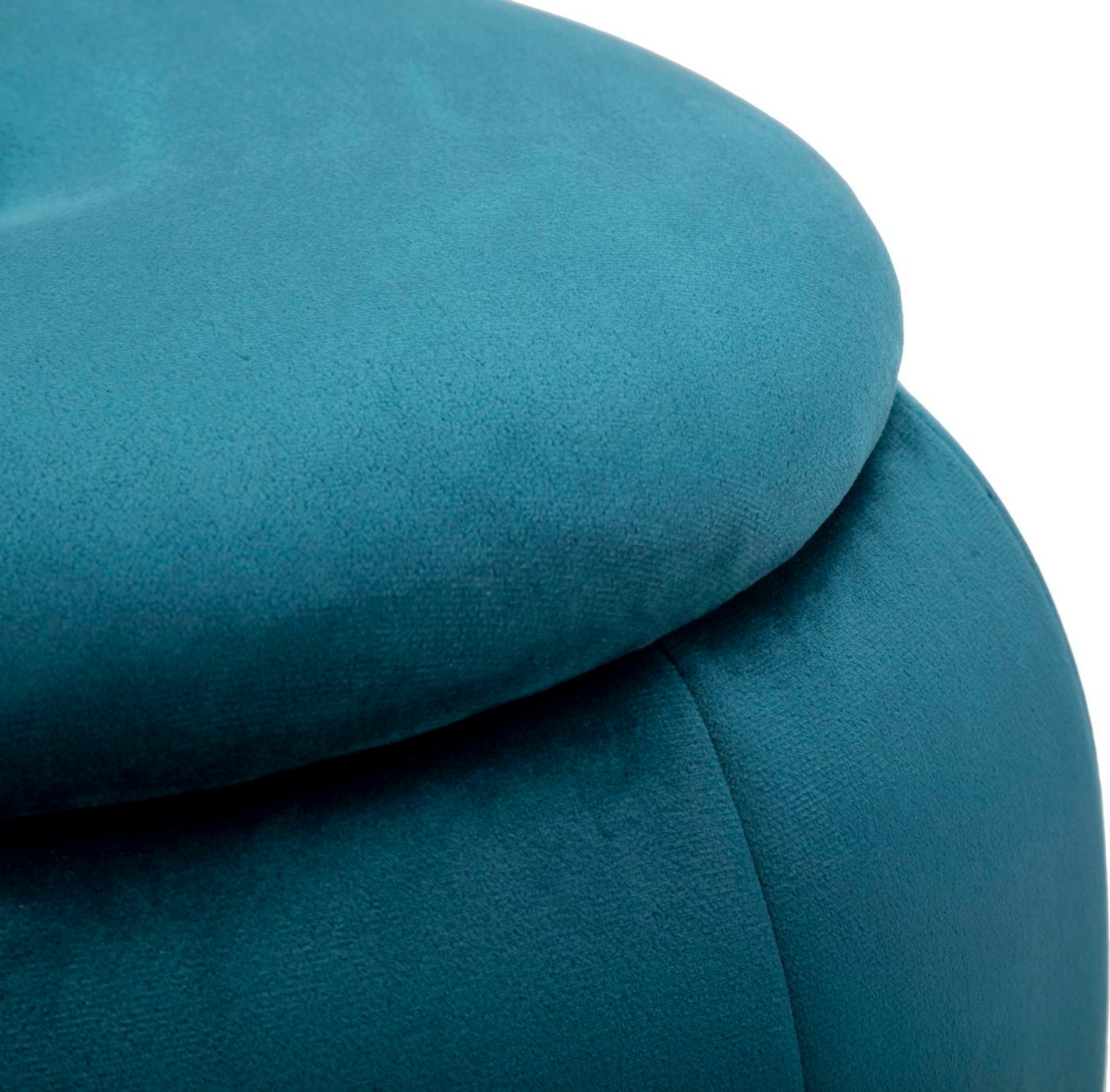 Setze einen glamourösen Akzent in deinem Wohn- oder Schlafzimmer mit diesem eleganten Pouf, dessen Design von den luxuriösen Ankleidezimmern großer Hollywood-Diven inspiriert ist! Er ist mit einem weichen, petrolfarbenen Samtbezug gepolstert, der ihm eine luxuriöse Haptik verleiht.