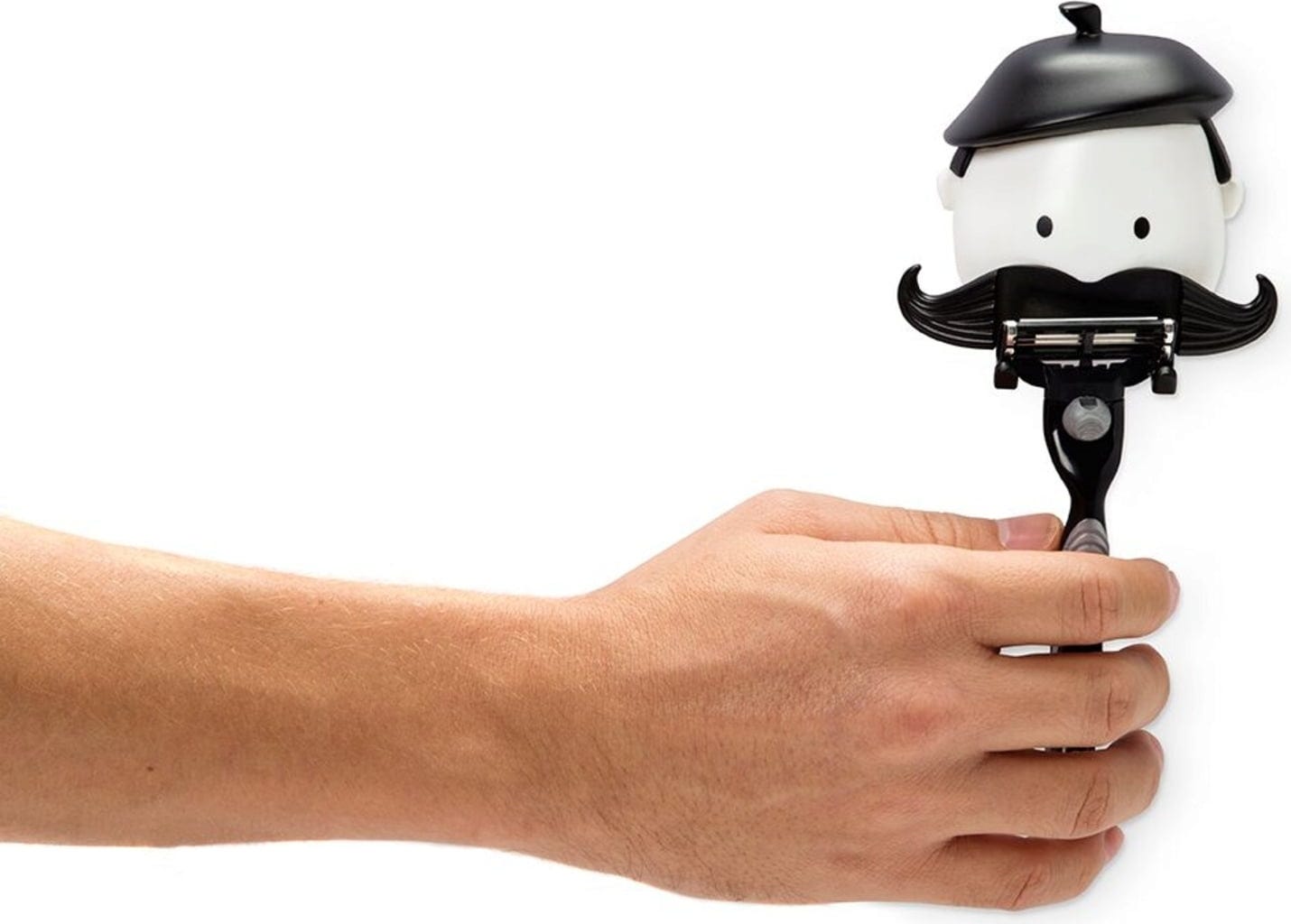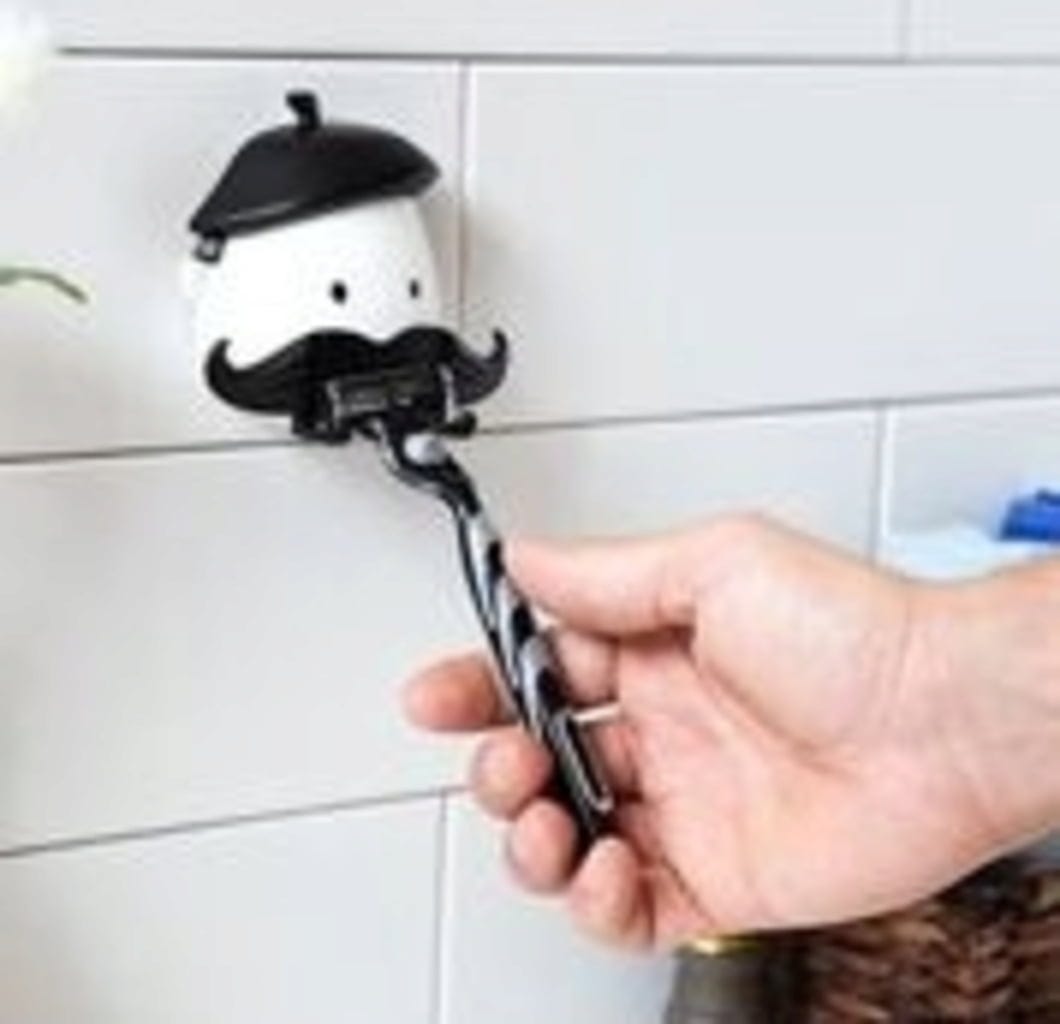 Dieser elegante Gentleman wird Ihren Rasierer dort aufbewahren, wo er hingehört - auf einem gepflegten Schnurrbart. Dank dem Saugnapf hält Mr. Razor an Fliesen wie auch am Spiegel. Für eine saubere und sichere Aufbewahrung von Rasierern.