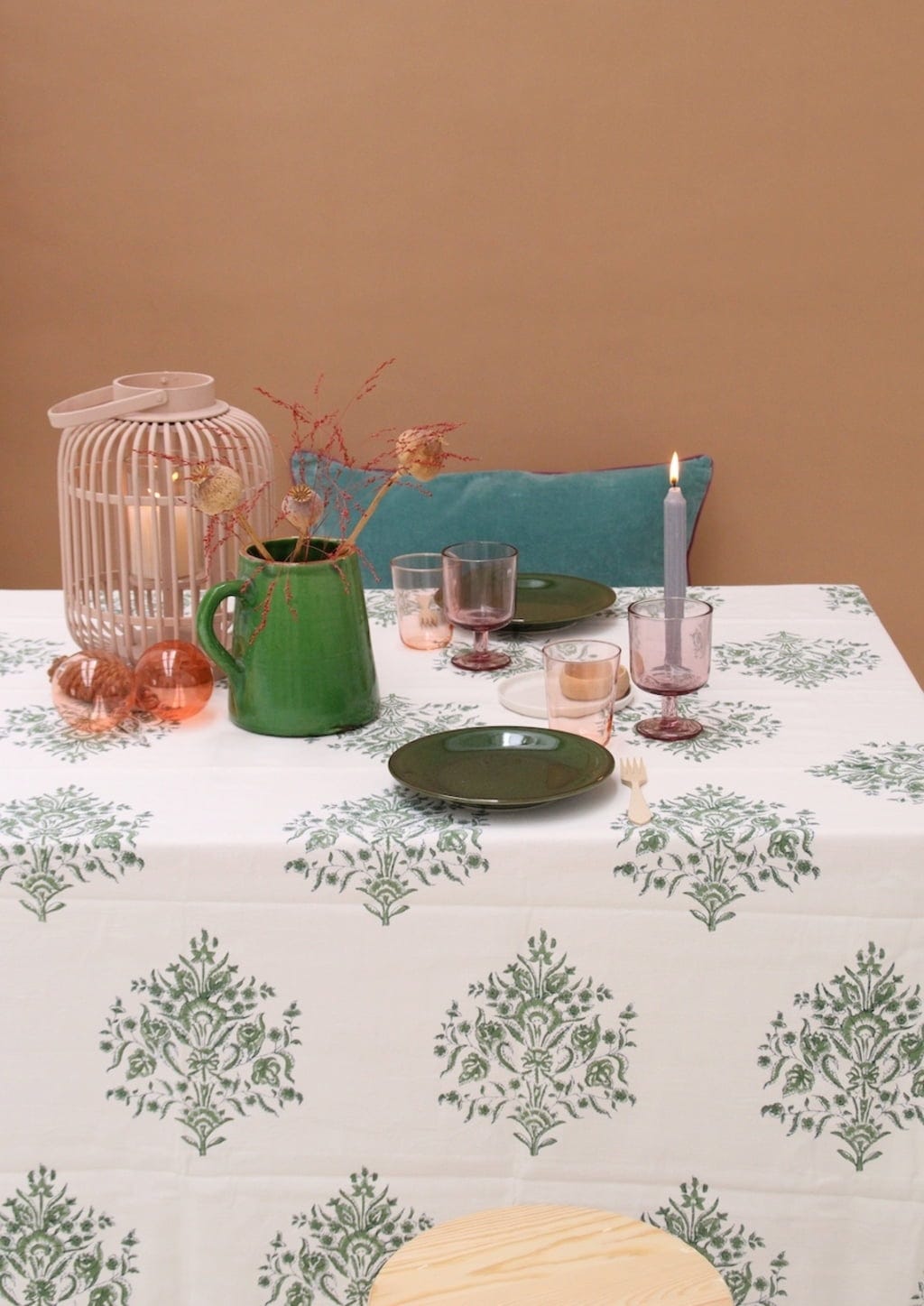 Egal ob für besondere Anlässe oder für ein alltägliches Menü - die florale Tischdecke von rozablue wertet jeden Tisch auf. Dank des handgestempelten Prints ist sie immer ein Hingucker und sorgt für ein frisches Aussehen.