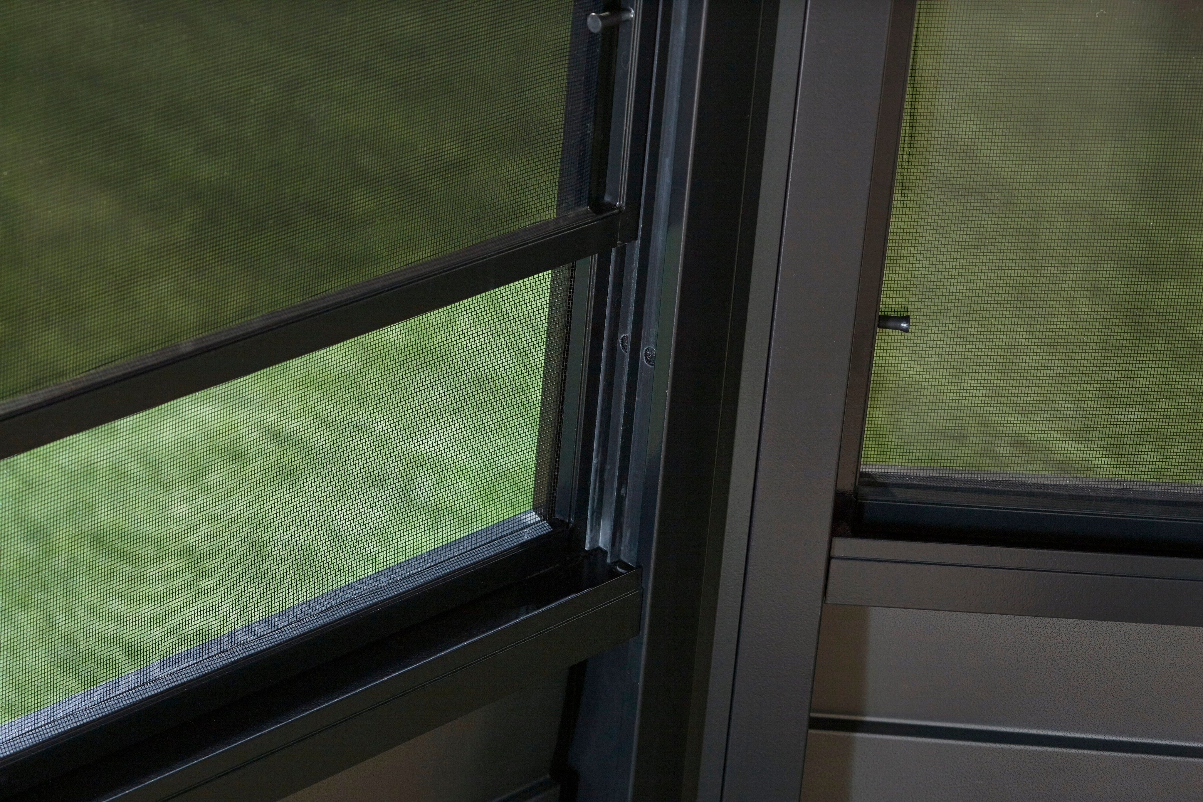 Ein besonderes Highlight ist die flexible Belüftung: Die 14 Fenster aus PVC-Folie lassen sich einfach nach unten schieben, während der rundum integrierte Moskitoschutz ungebetene Gäste fernhält. Für eine unkomplizierte Pflege kannst du die Fenster mit nur zwei Handgriffen entnehmen. Der großzügige Zugang durch die Doppelschiebetür rundet den Komfort ab und schafft einen vollwertigen Wohnraum im Freien, der keine Wünsche offen lässt.