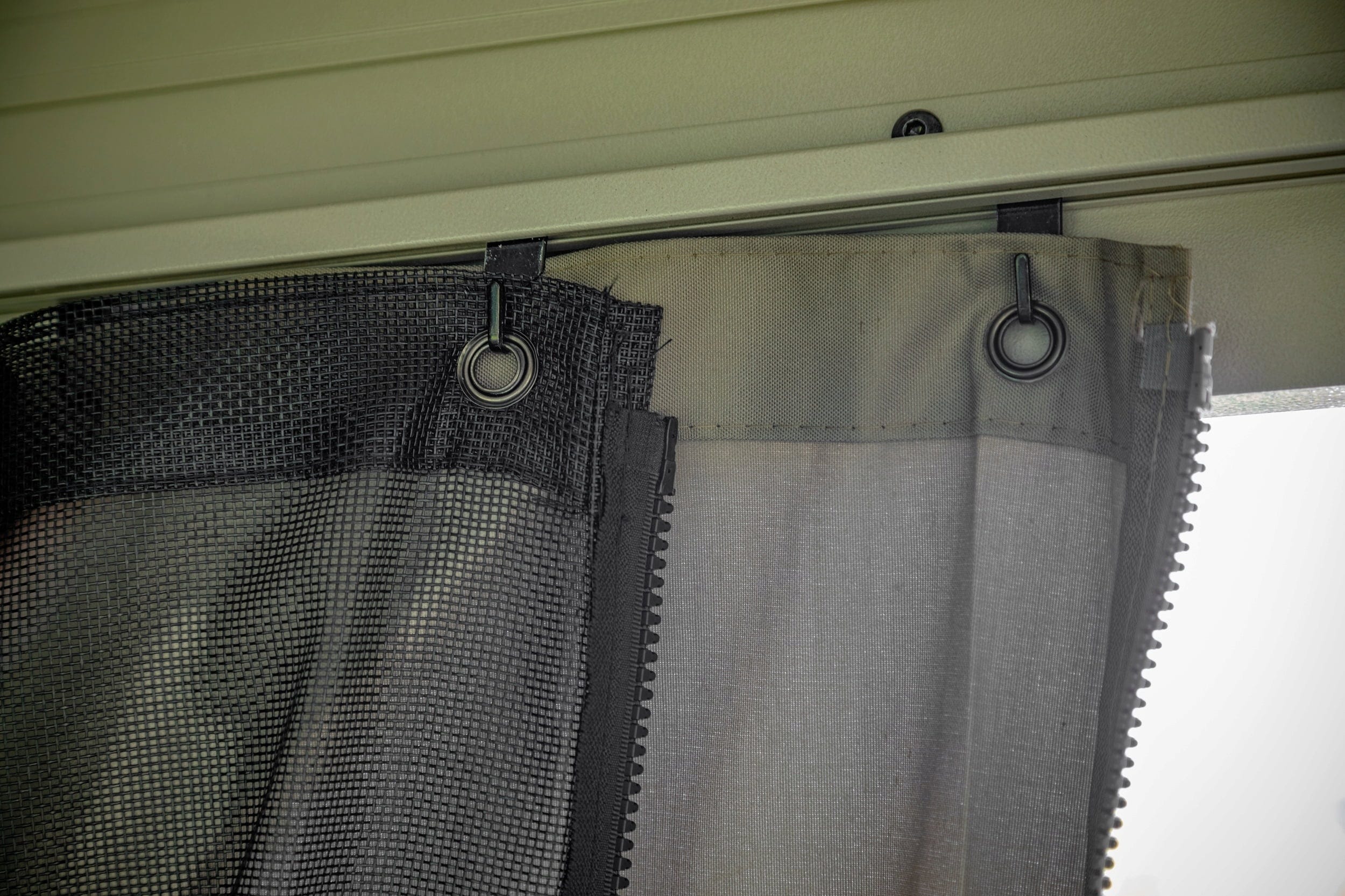 Das funktionale doppelte Stahldach sieht nicht nur klasse aus, sondern fördert durch den Windauslass auch die Durchlüftung, damit du unter deinem Pavillon immer frische Luft hast. Für ungestörte Stunden sind Moskitonetze aus Nylon bereits im Lieferumfang enthalten. Dank der zweigleisigen Laufschienen kannst du diese sogar gleichzeitig mit optional erhältlichen Vorhängen nutzen. Ein cleveres Extra für dich: Die Regenrinnen sind dezent direkt in die Pfosten integriert.