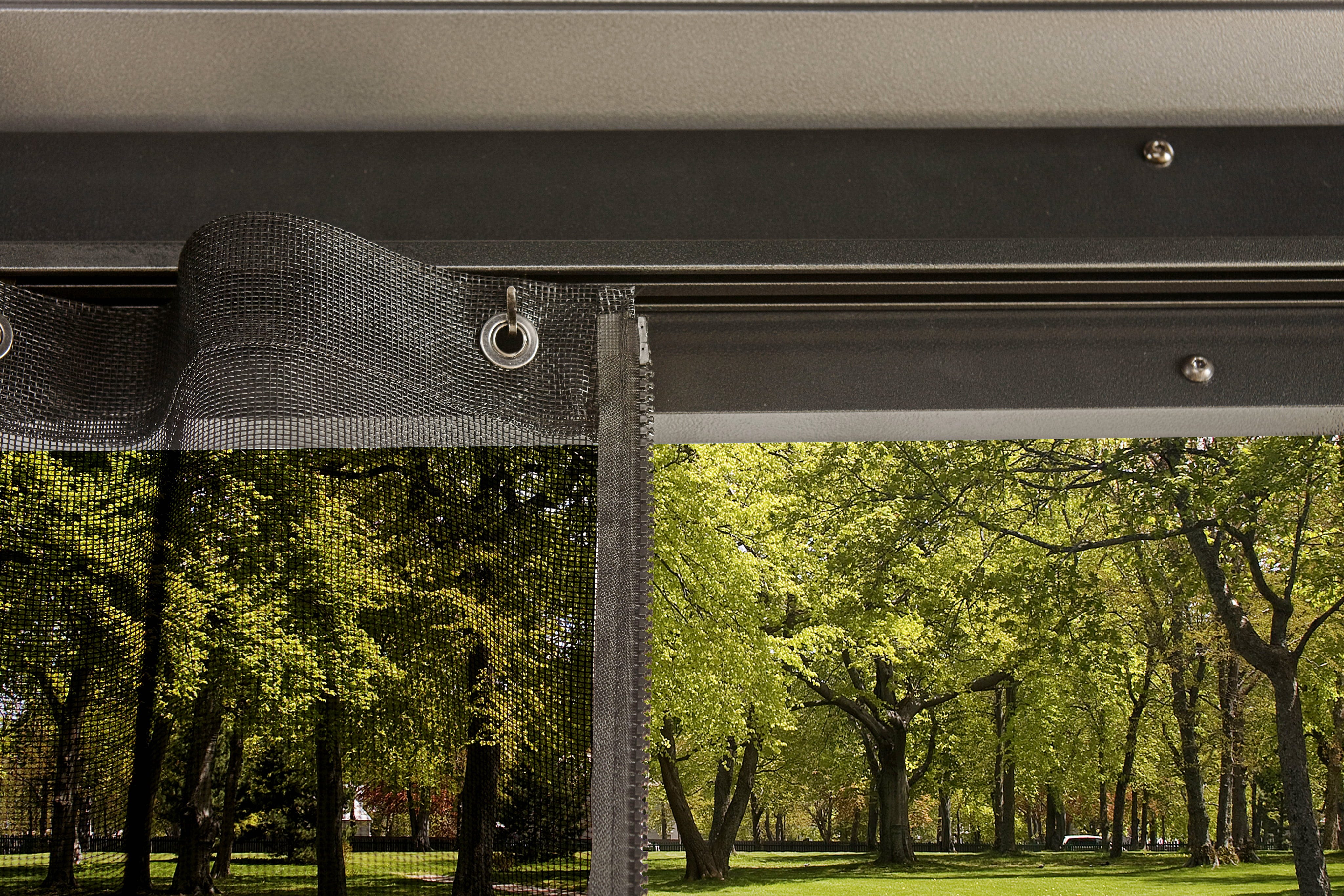 Dank des integrierten Entwässerungssystems in den Pfosten & der zweigleisigen Laufschienen bietet der Messina maximalen Komfort. Nutze die bereits enthaltenen Moskitonetze zeitgleich mit optionalen Vorhängen, um dir deine private Wohlfühloase ganz nach Wunsch zu gestalten.