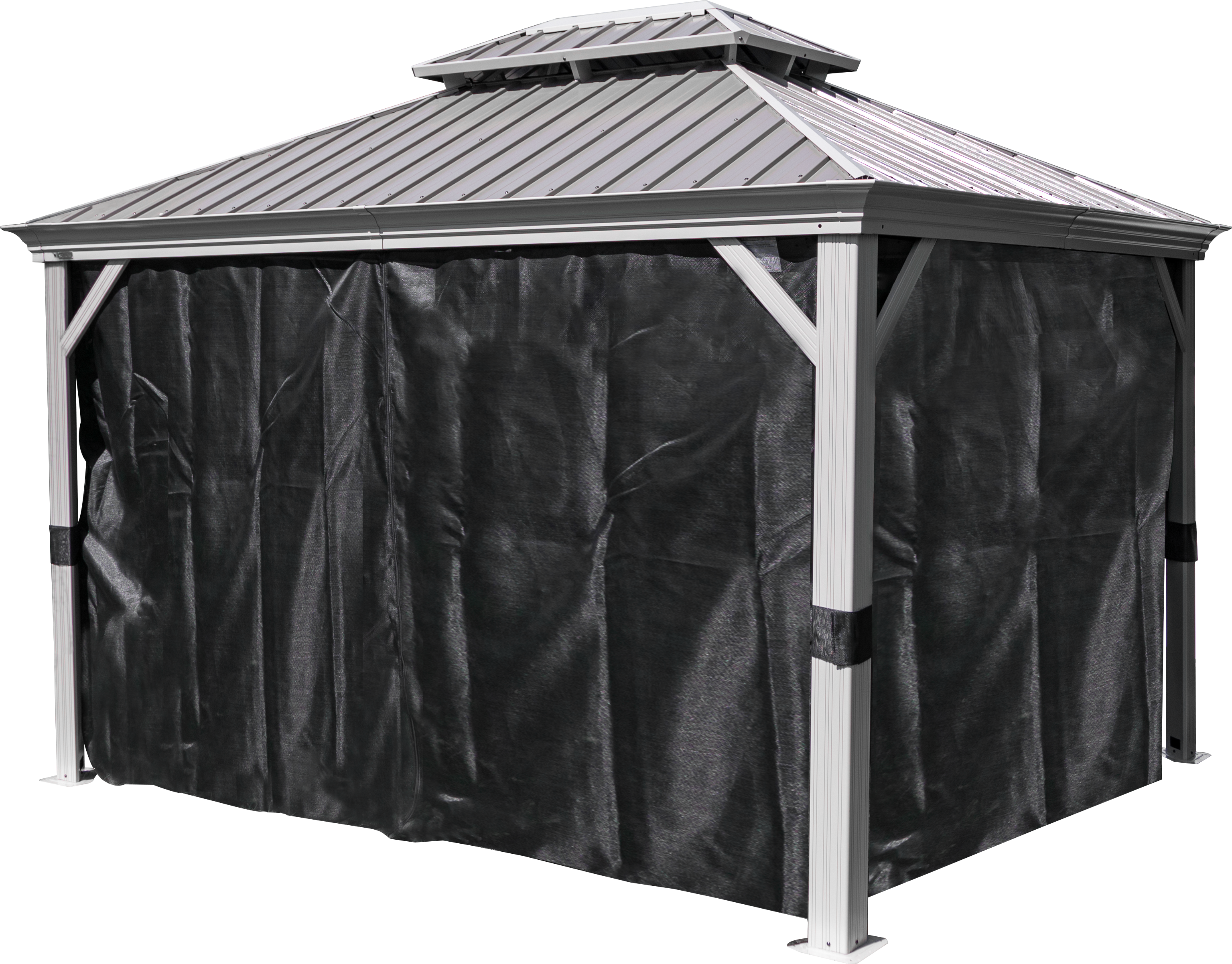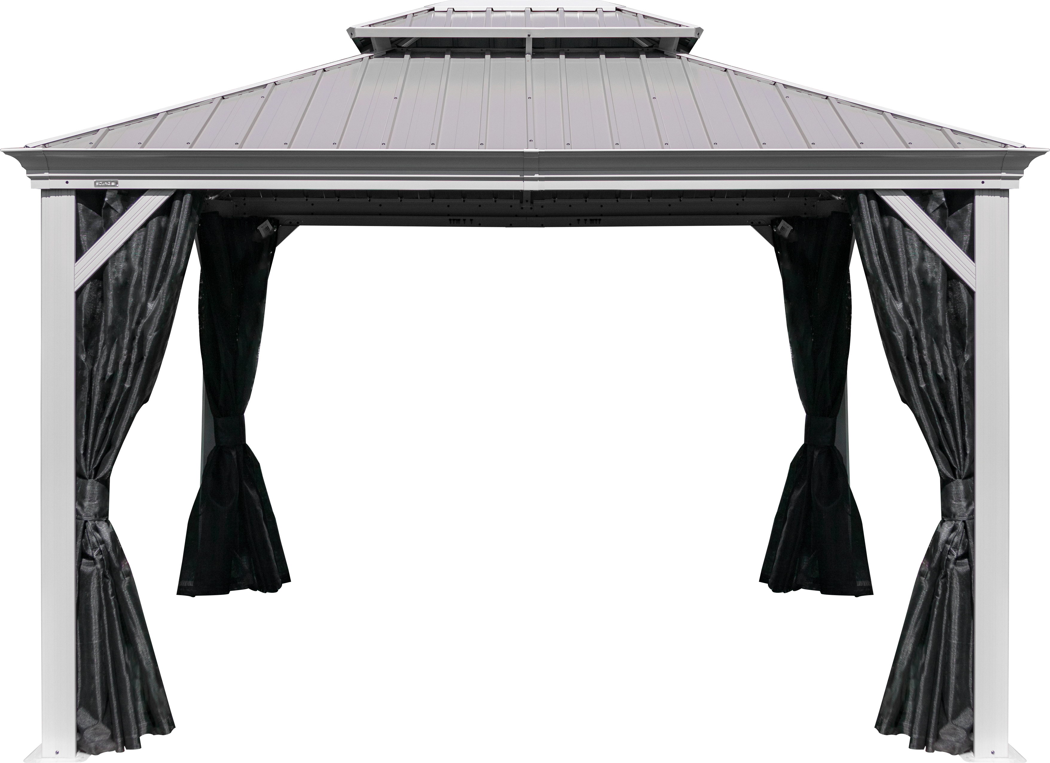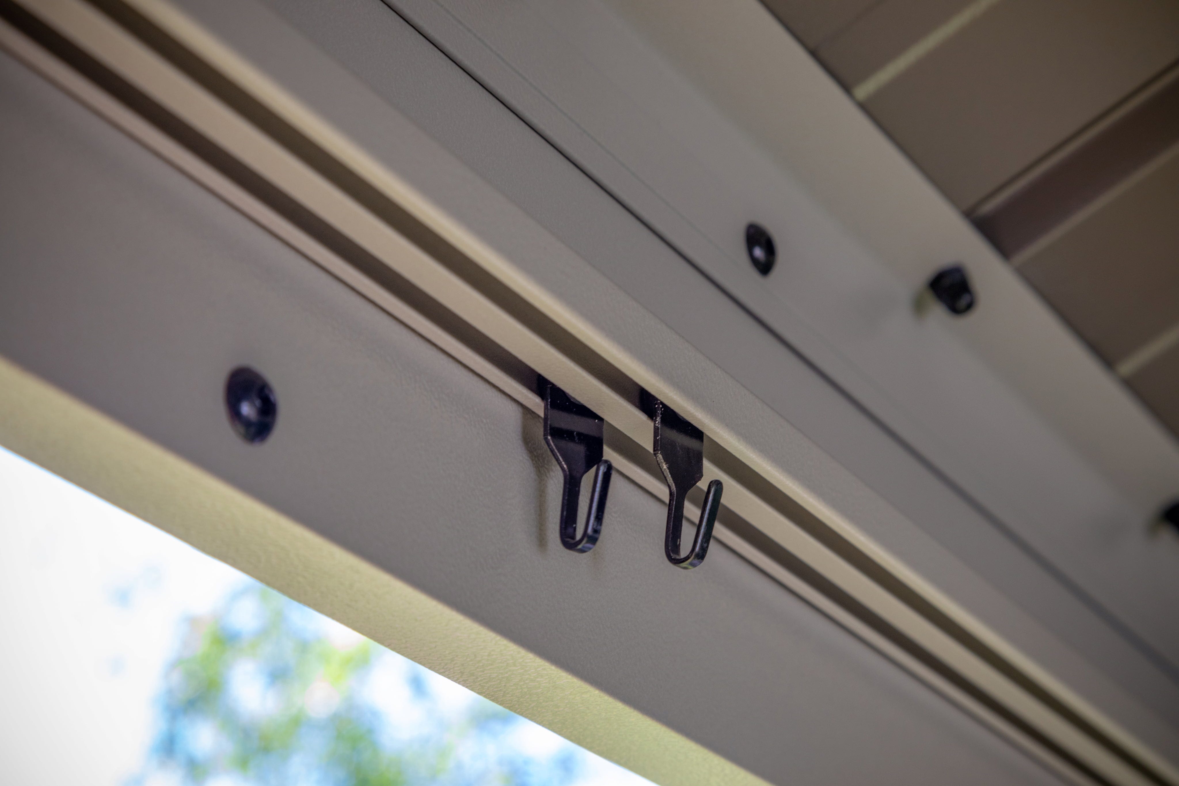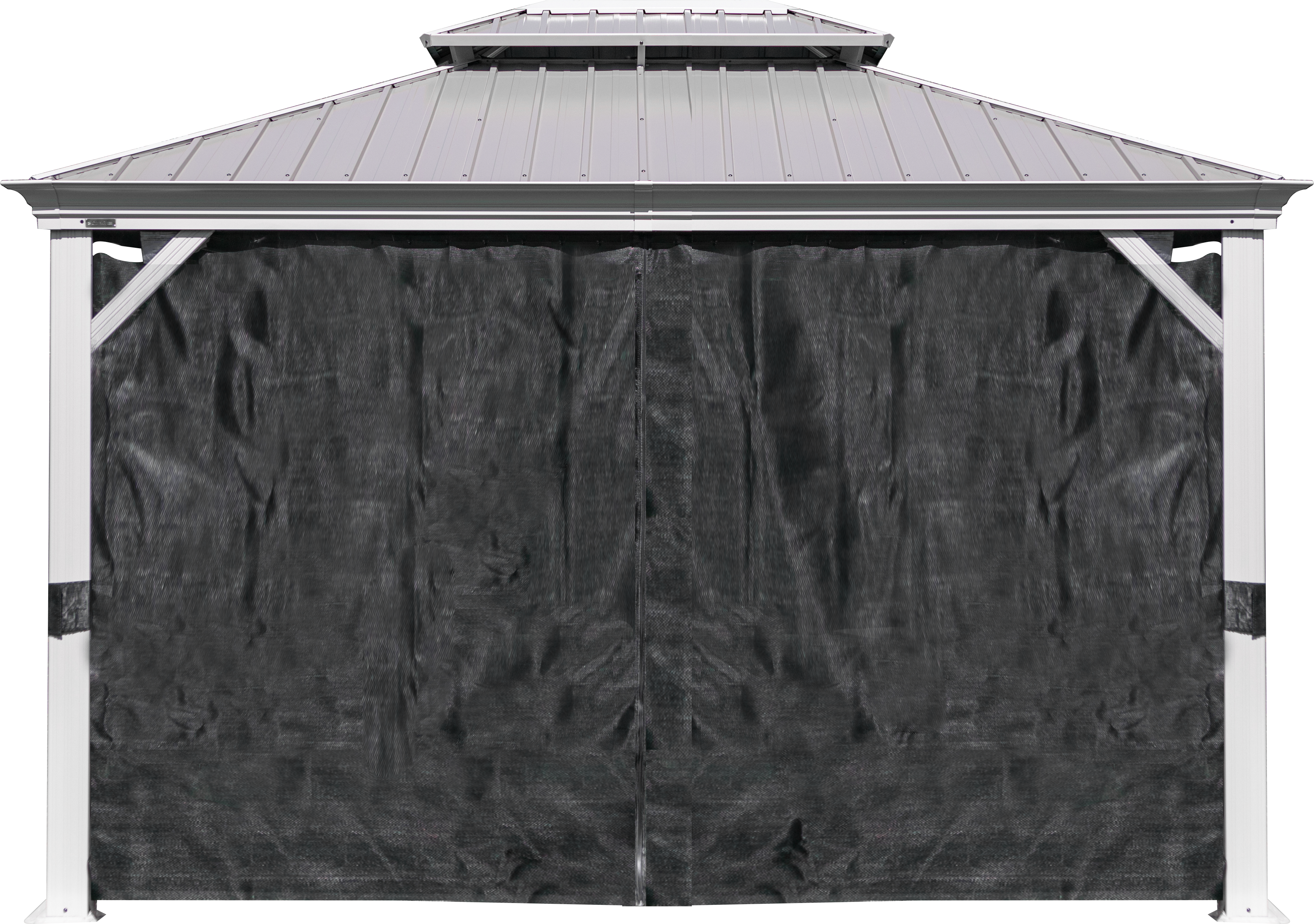 Dank des integrierten Entwässerungssystems in den Pfosten und der zweigleisigen Laufschienen bietet der Messina maximalen Komfort. Nutze die bereits enthaltenen Moskitonetze zeitgleich mit optionalen Vorhängen, um dir deinen privaten Rückzugsort ganz nach Wunsch zu gestalten.