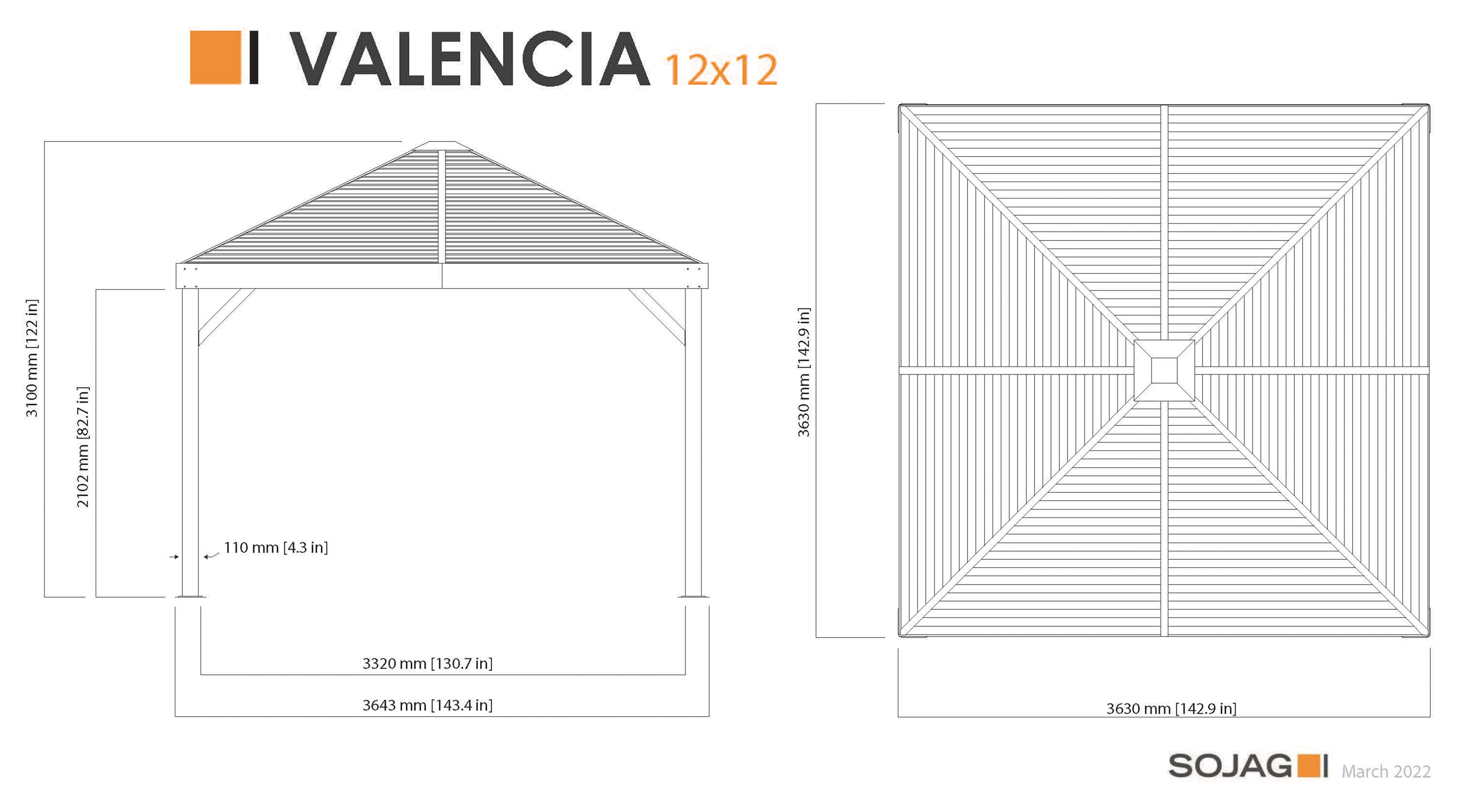 Sojag Pavillon Valencia 12x12 Holz-Edition / 3,6 x 3,6 m