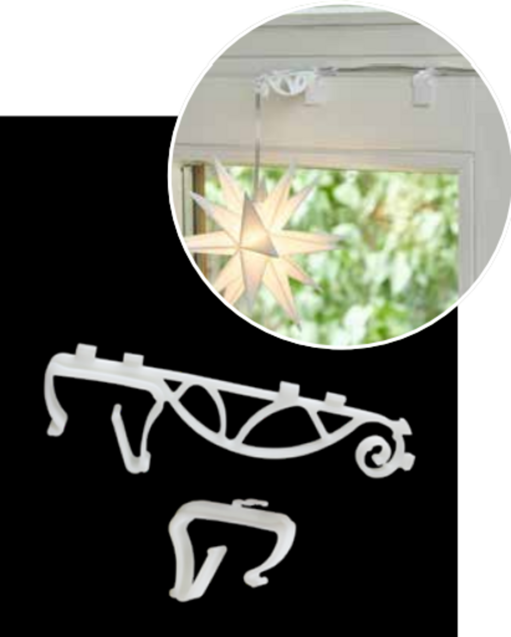 Inhalt: 4-teiliges Set ( 1 x Sternenhalter, 3 x Kabelführung)