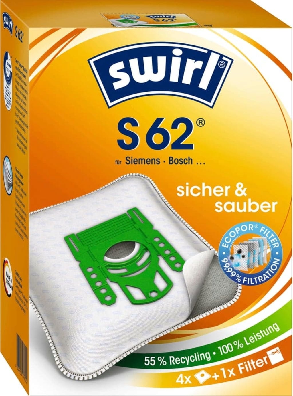 Swirl® EcoPor® Staubsaugerbeutel S 62, 4 Stück