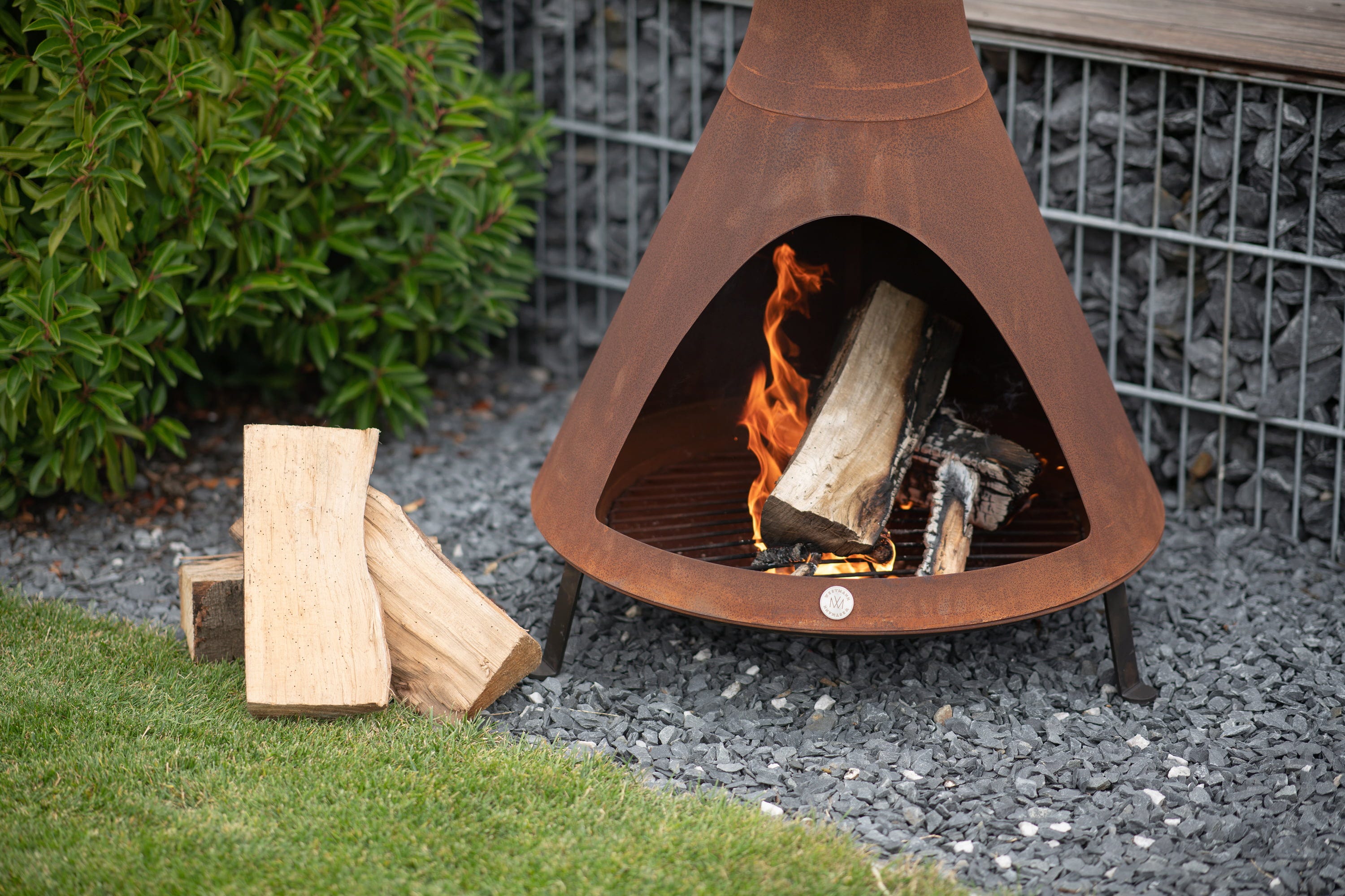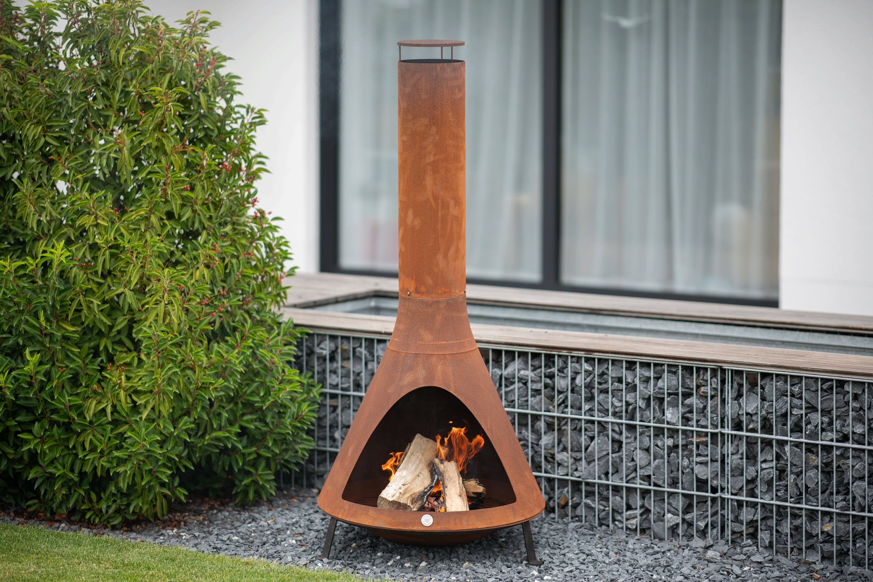 Ob du den Abend nach einem langen Arbeitstag alleine ausklingen lässt oder deine Freunde zu einer geselligen Runde auf der Terrasse einlädst – das Spiel der Flammen im Inneren der kegelförmigen Struktur schafft sofort eine heimelige Atmosphäre. Dank der soliden Konstruktion und der stabilen Füße steht der Kamin sicher auf deinem Rasen oder Steinboden und wird schnell zum Mittelpunkt deiner Gartengestaltung!
