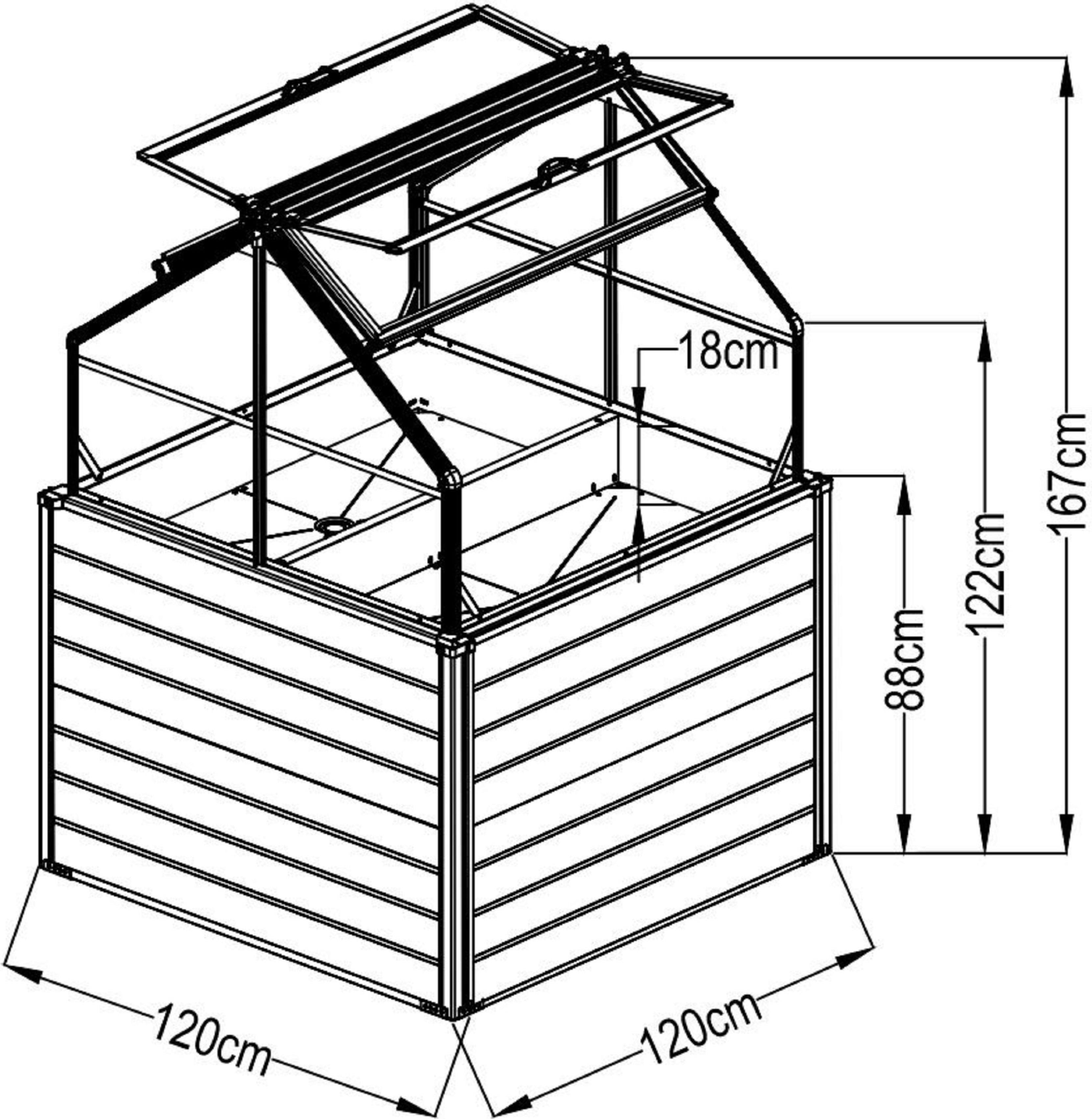 Maße (L x B x H): 120 x 120 x 169 cm