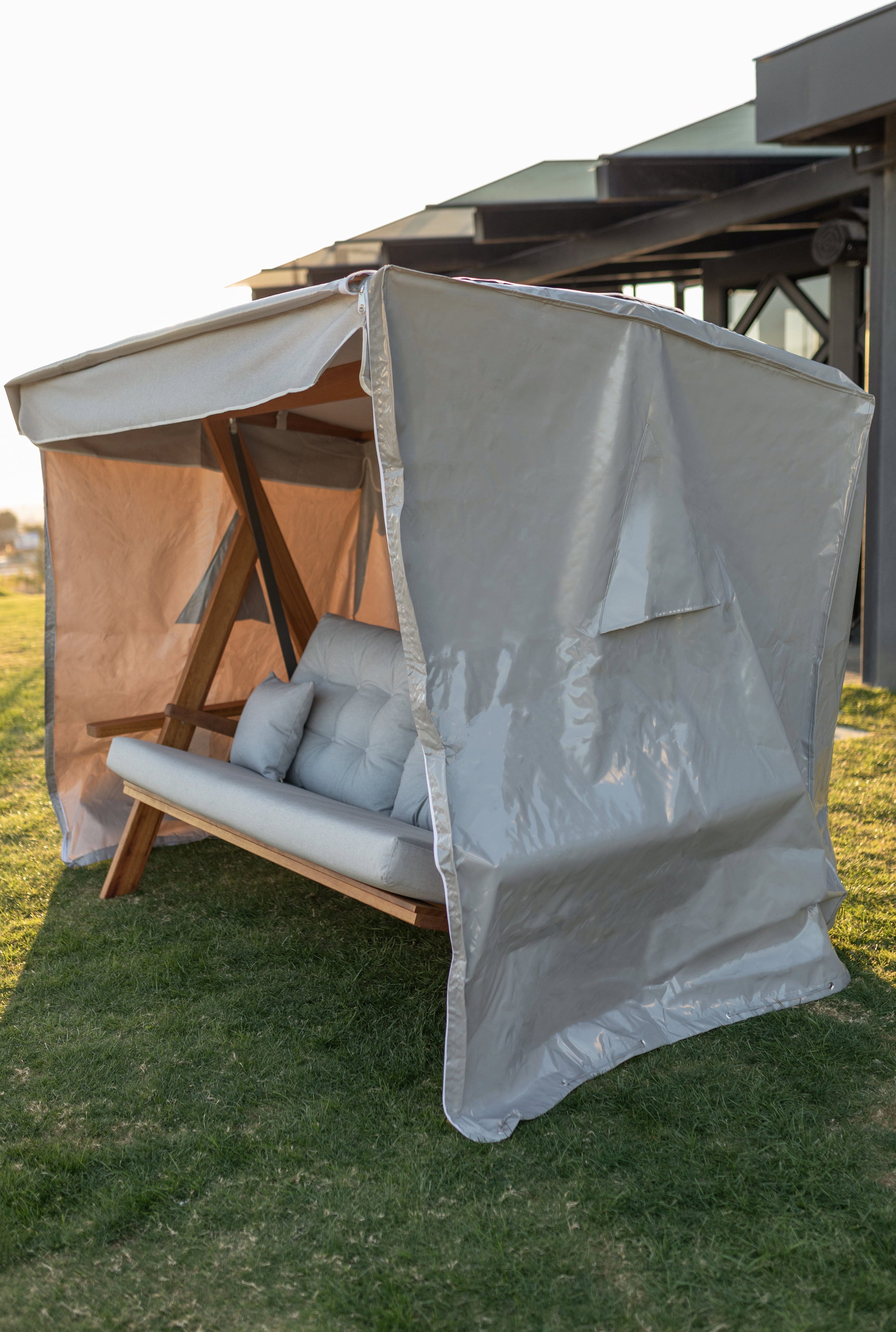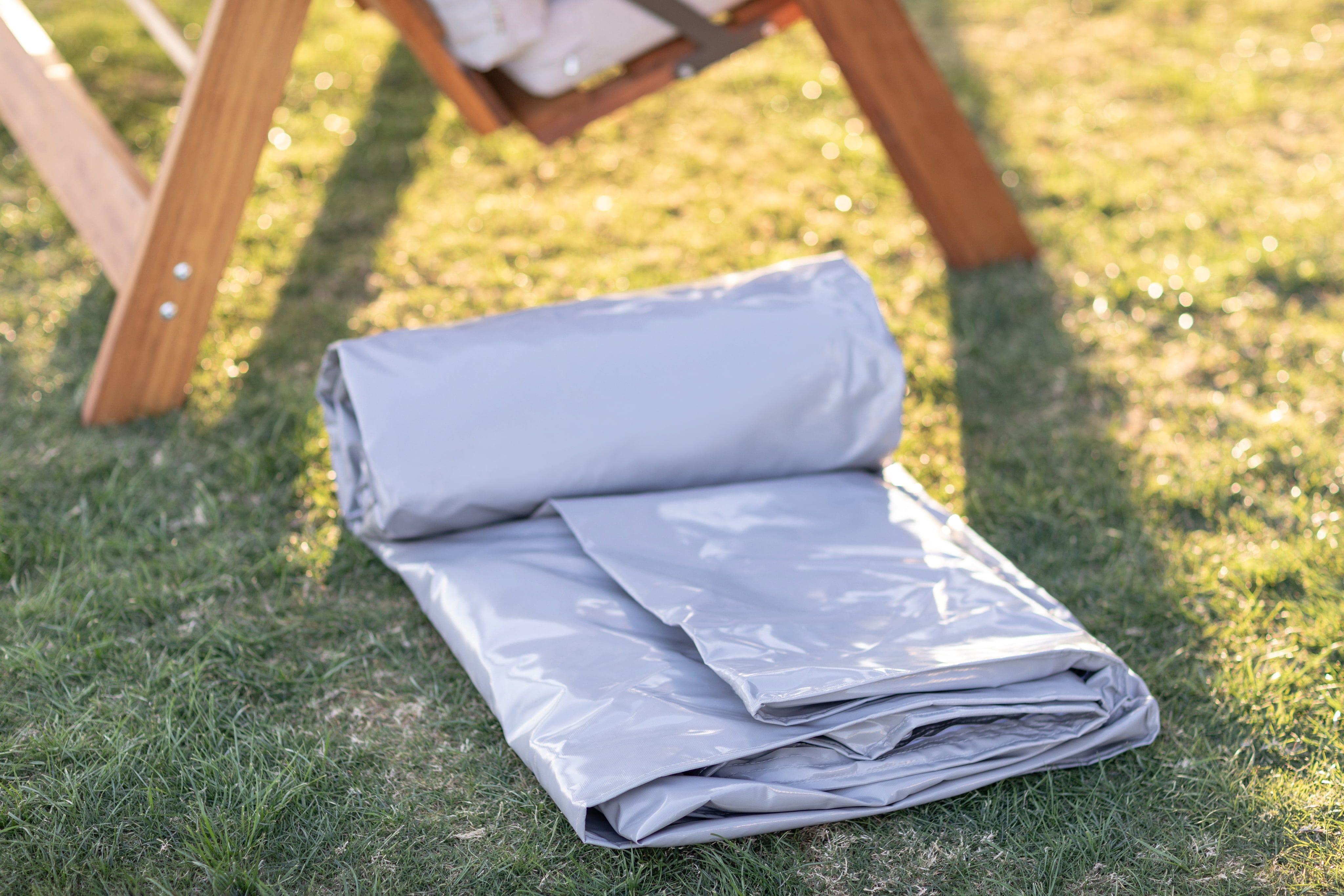 Durch den integrierten Reißverschluss lässt sich die Hülle mühelos über die Konstruktion ziehen, während der praktische Kordelzug für einen festen Sitz sorgt. Wenn du die Schaukel nutzen möchtest, lässt sich die Schutzhülle mit wenigen Handgriffen klein zusammenfalten und platzsparend verstauen. So investierst du mit minimalem Aufwand in die Langlebigkeit deines Lieblingsplatzes und stellst sicher, dass die edle Optik deiner Sia oder Viva 2400 erhalten bleibt!