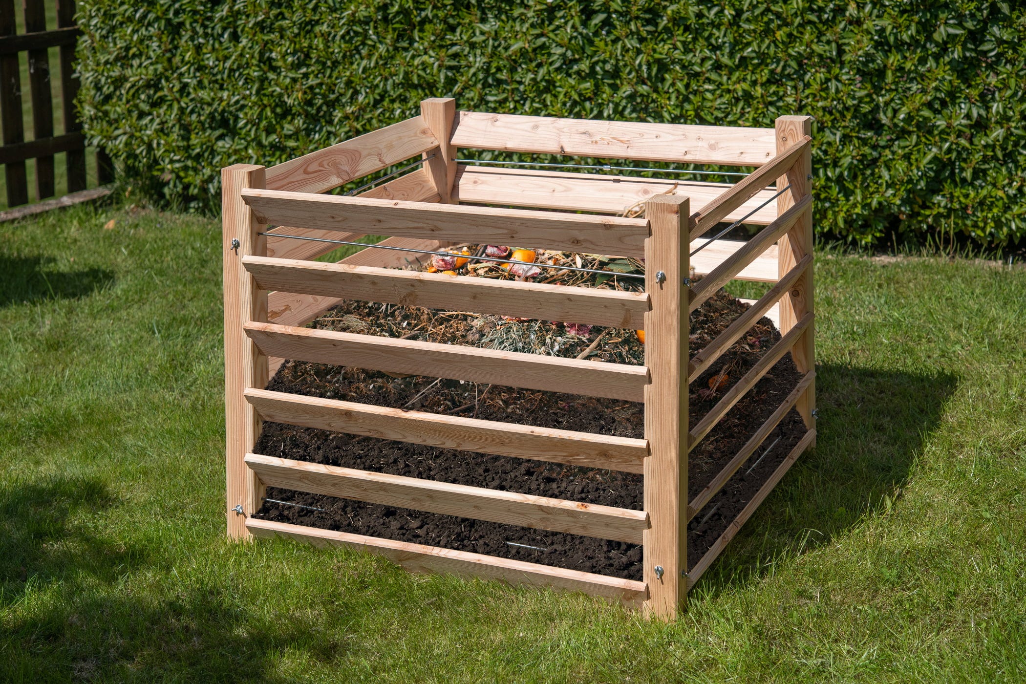Verwandle deine Gartenabfälle in pures Gold für deine Pflanzen! Mit dem Westmann Komposter Konni setzt du auf eine nachhaltige und hocheffiziente Lösung, um wertvollen Humus direkt in deinem Garten zu erzeugen. Gefertigt aus massivem, robustem Lärchenholz, fügt sich dieser Komposter vollkommen natürlich in dein Gartenbild ein. Verstärkt durch robuste, verzinkte Stahlstangen hält die Konstruktion dem Druck des Kompostguts spielend stand und bietet dir ein beeindruckendes Fassungsvermögen.