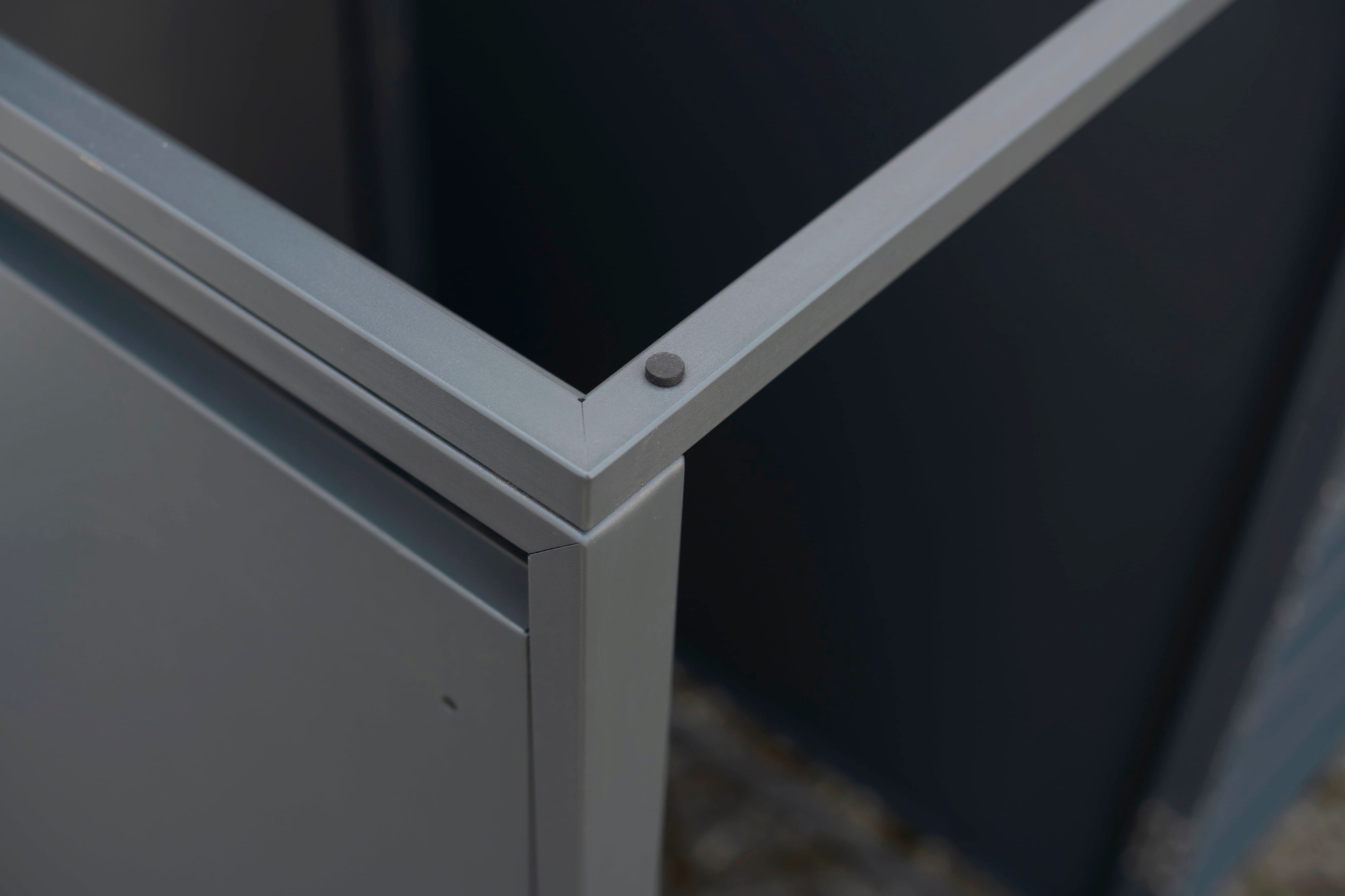 Mit der Westmann Mülltonnenbox Kubus kannst du deine Mülltonnen ganz diskret verbergen. Das minimalistische Design in zeitlosem Anthrazit lässt unschöne Kunststofftonnen hinter einer hochwertigen Fassade aus pulverbeschichtetem Stahl verschwinden. Dabei profitierst du nicht nur von der ästhetischen Aufwertung: Die Box schirmt deine Tonnen effektiv vor direkter Sonneneinstrahlung ab, was die Geruchsentwicklung an warmen Tagen reduzieren kann. Ob du eine einzelne Tonne kaschieren möchtest oder Platz für ein ganzes Trennsystem bis zu fünf Tonnen benötigst – Kubus bietet dir die nötige Flexibilität und Ordnung auf deinem Grundstück.
