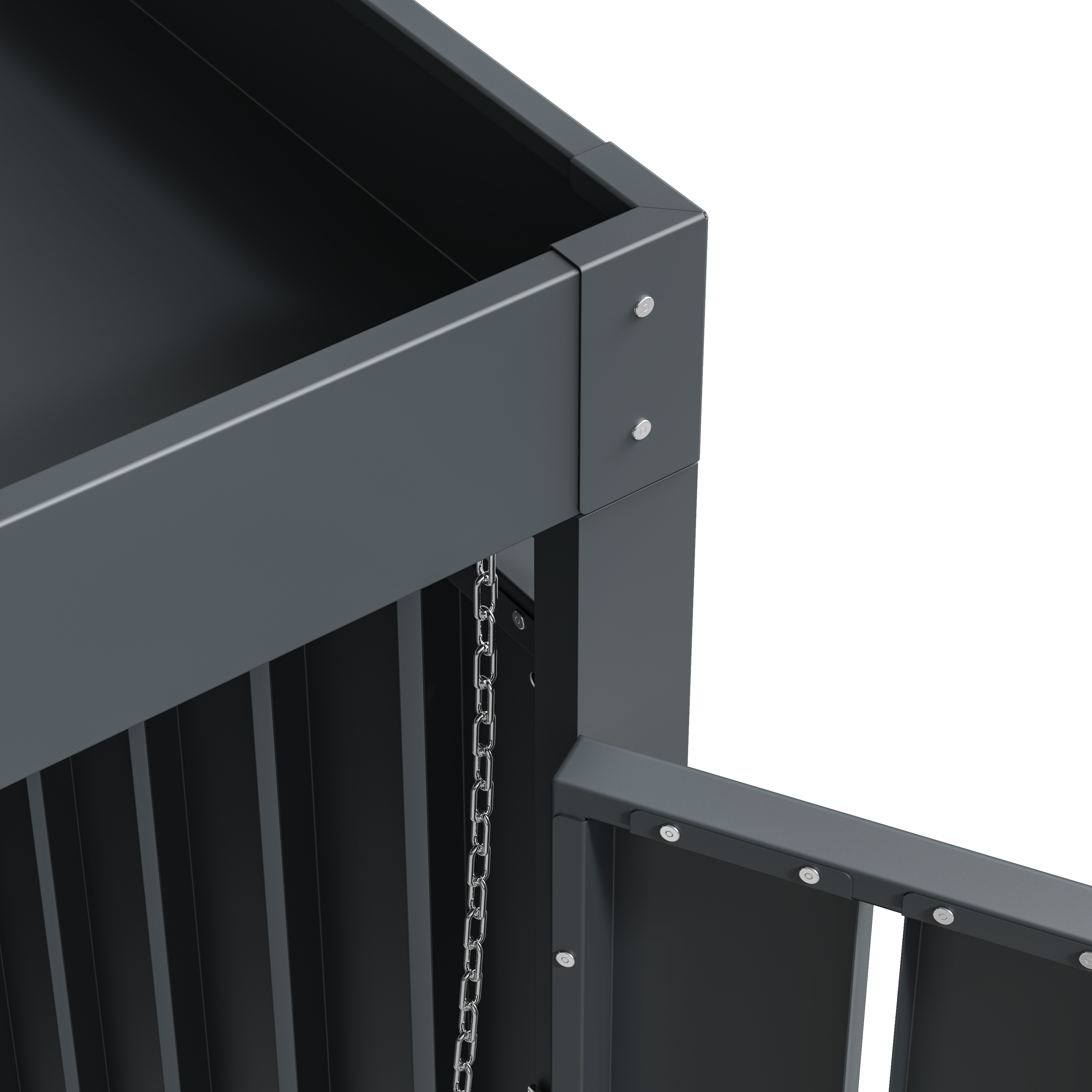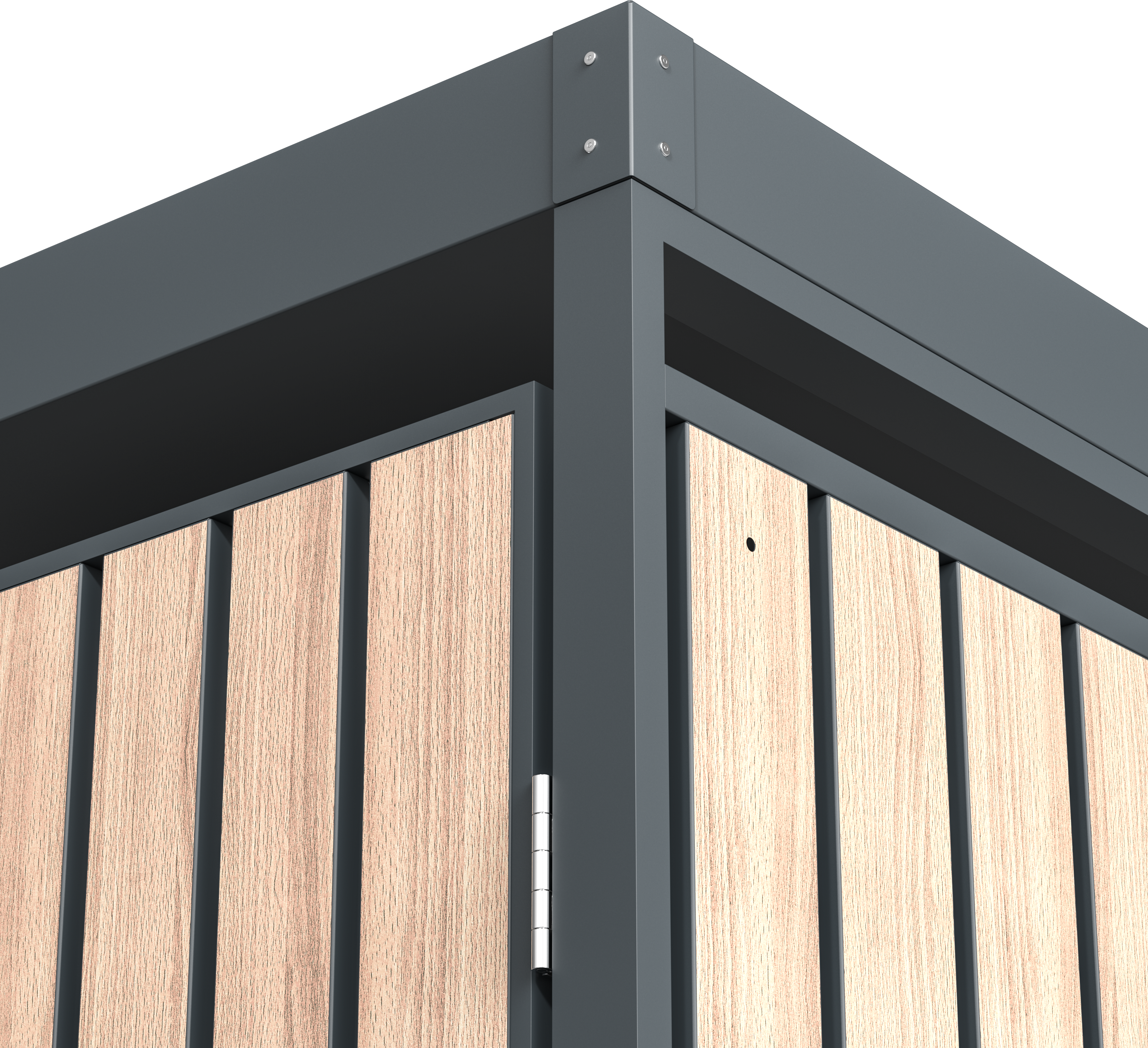 Neben der optischen Aufwertung bietet dir die Box einen hohen praktischen Nutzen. Die robuste Metallkonstruktion schützt deine Tonnen vor direkter Sonneneinstrahlung, was die Hitzeentwicklung im Inneren reduziert und somit unangenehme Gerüche reduzieren kann.