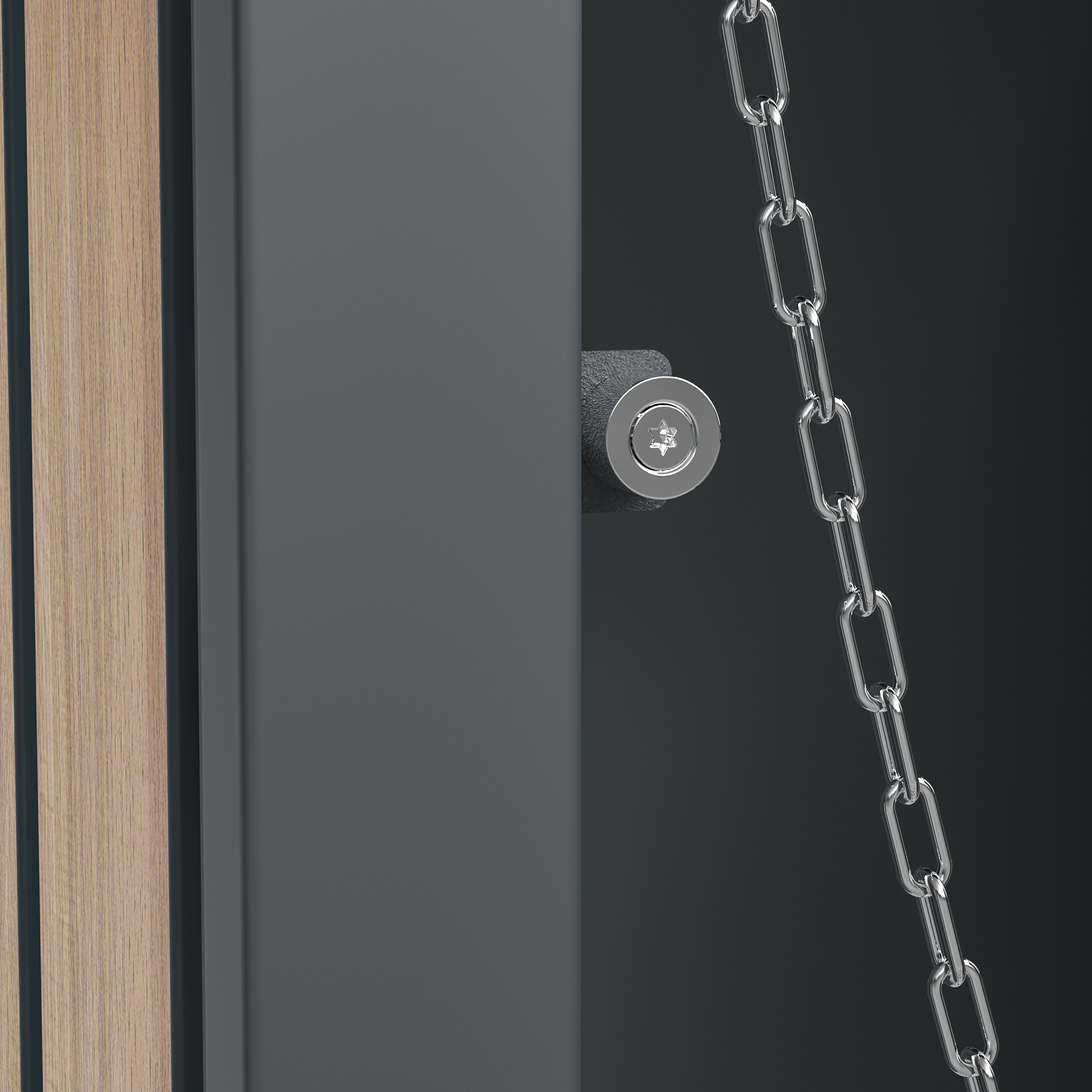 Das Handling im Alltag ist denkbar einfach: Über die großzügigen Fronttüren in edler Holzoptik lassen sich die Tonnen mühelos hinein- und herausmanövrieren. Zudem sorgt das integrierte Schloss dafür, dass unbefugter Zugriff verhindert wird. Dank der hochwertigen Materialkombination aus anthrazitfarbenem Stahl und warmen Holztönen setzt du einen exklusiven Akzent, der Langlebigkeit und modernes Design perfekt vereint!