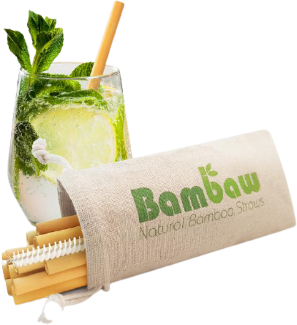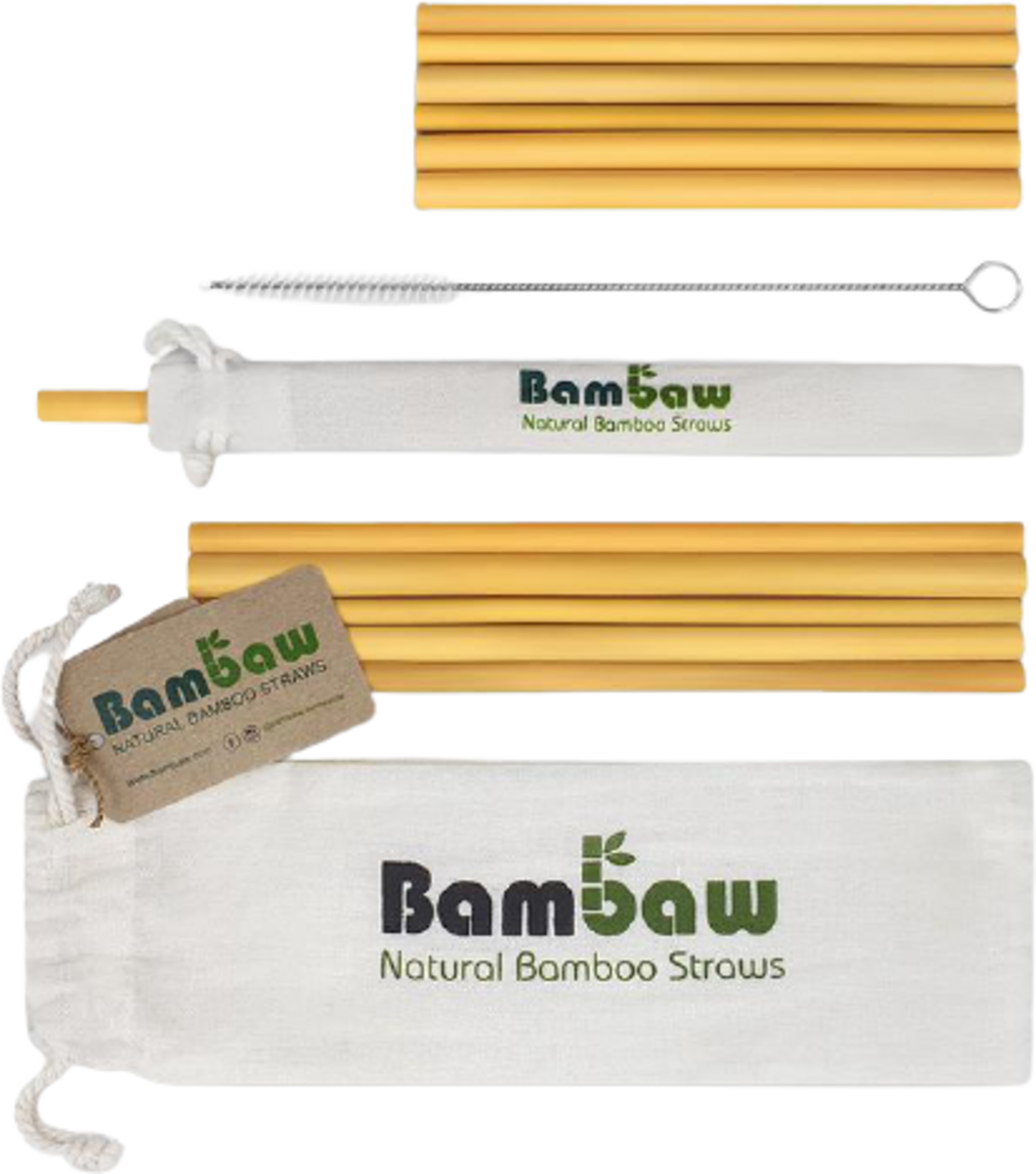 Bambaw Bamboo Straws with Cotton Pouch, 6 pcs. / 14 cm, 6 pcs. / 22 cm (12 items)