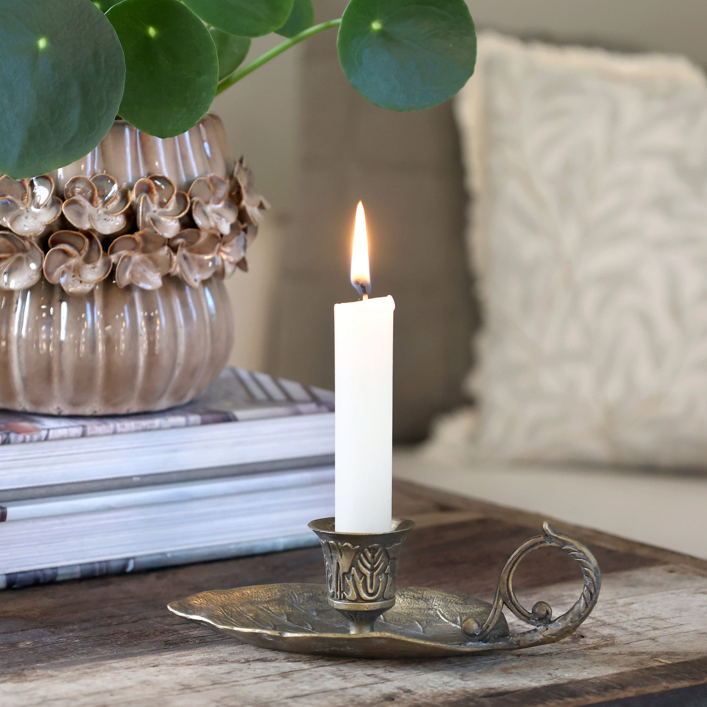 Chic Antique Chamber Candlestick with Leaf