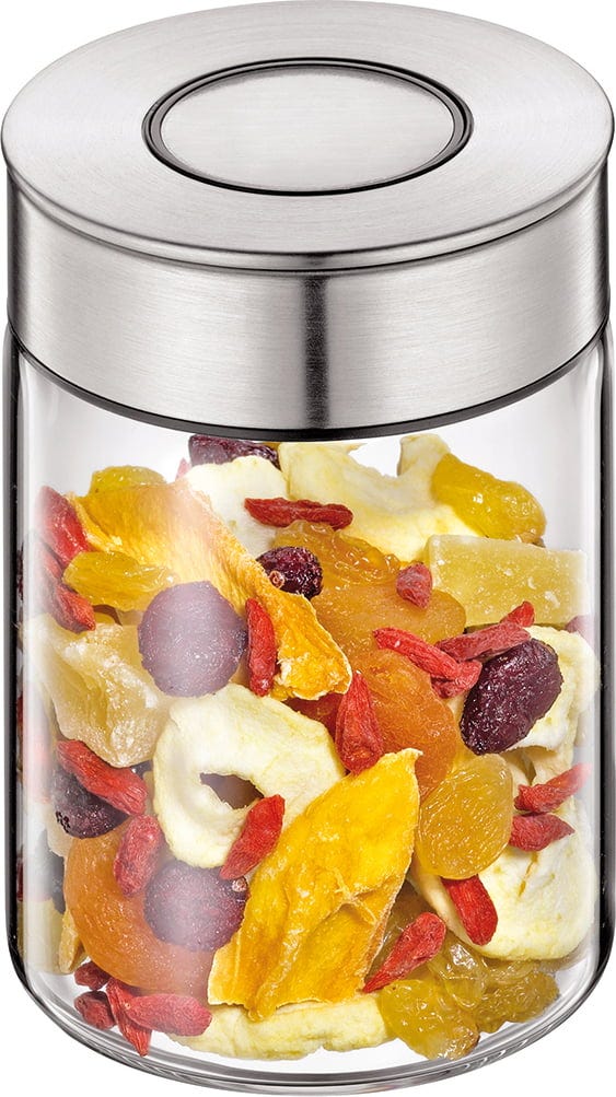 - Glass jar with stainless steel lid