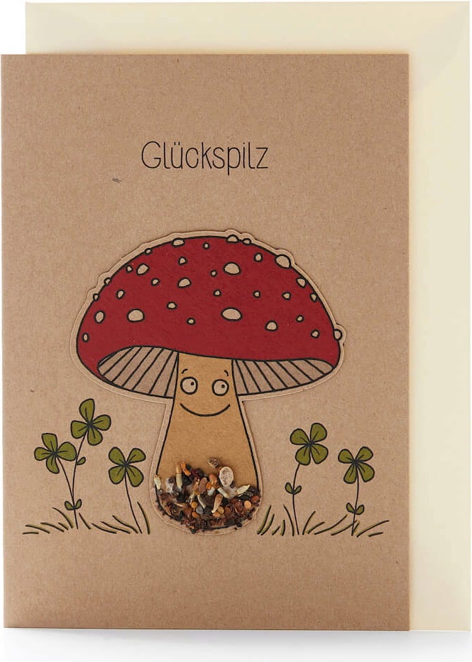 Die Stadtgärtner Greeting Card with Seed Plug "Glückspilz"