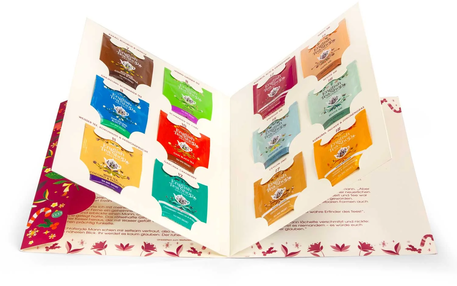 This special Advent calendar resembles a book and contains 24 organic teas spread out over several pages. These include exclusive winter and Christmas tea blends, accompanied by an entertaining Christmas story to read aloud and other festive extras. It is ideal for tea lovers or as a special treat for yourself to enjoy during the run-up to Christmas!