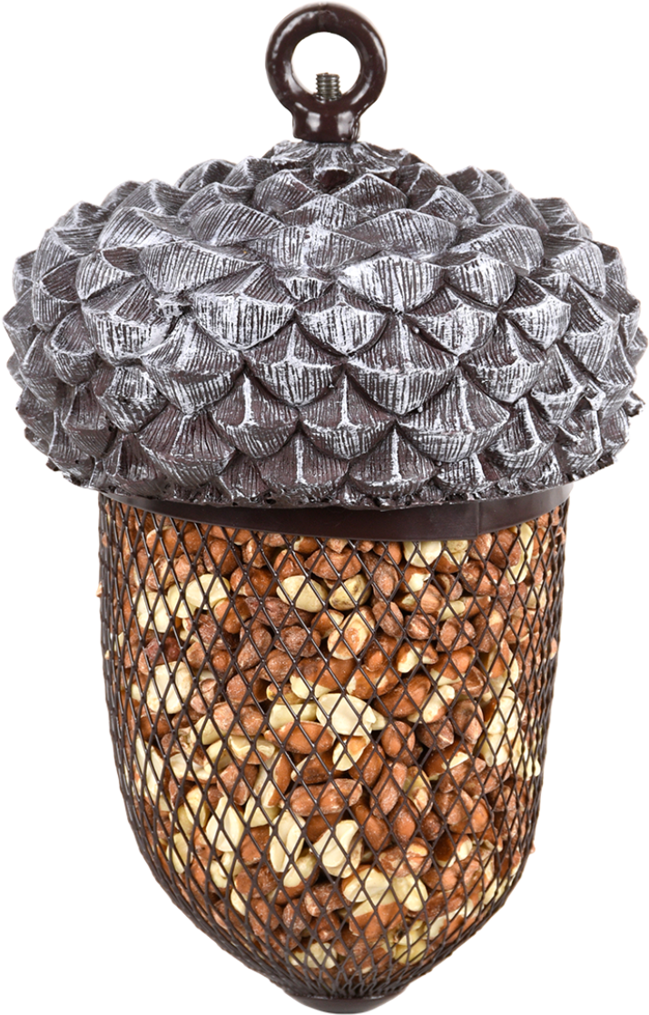 This silo proves that a feeding station doesn't have to look boring! The acorn shape catches the eye, and can be hung on a tree, from a beam on the patio or your balcony. To fill the feeder, simply unscrew the upper part and add peanuts and other tasty treats for birds.