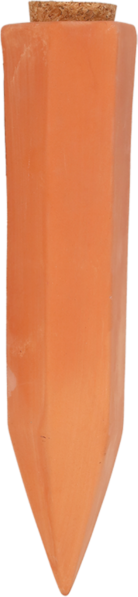 The Watering Stake made of natural terracotta keeps your plants supplied with water for a few days so you don't have to water them every day.
