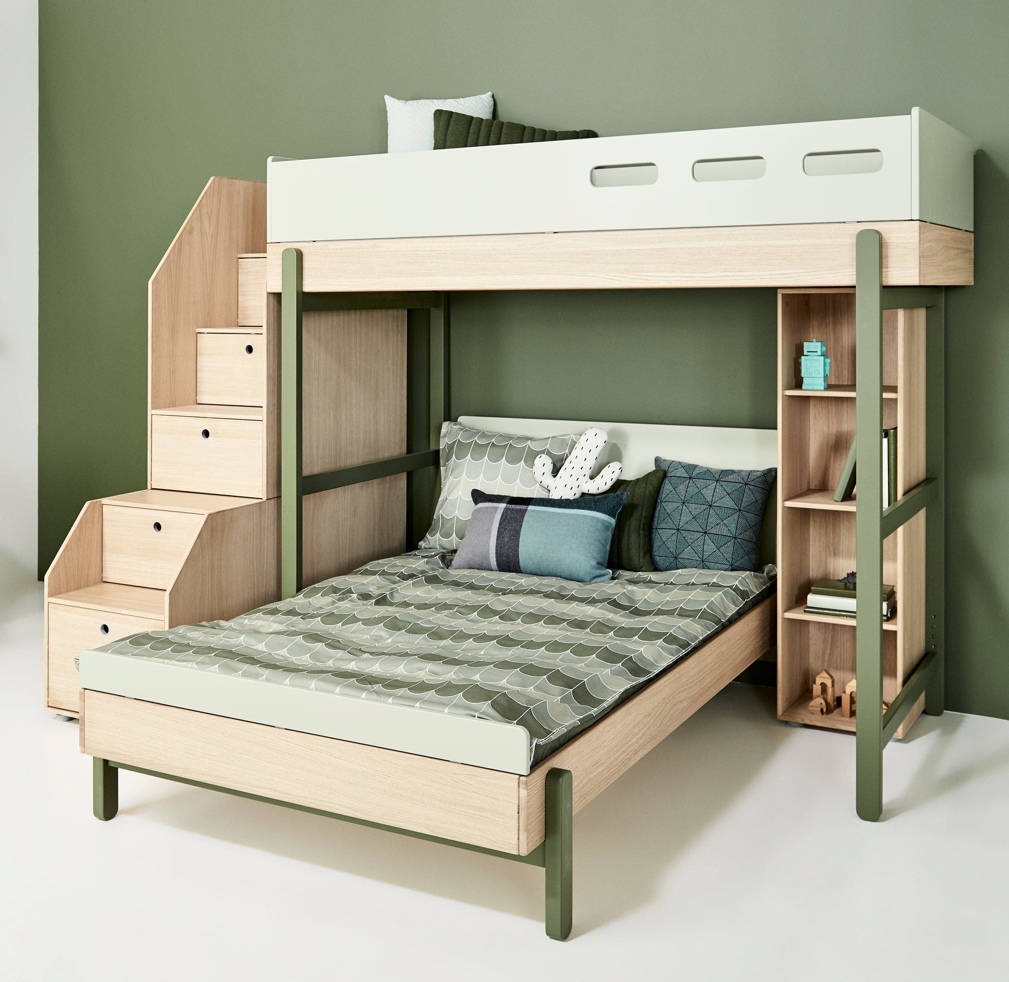 These stairs are suitable for use with the Popsicle loft bed by Flexa. Included is storage space that is ideal for storing items that can be easily retrieved when required. The stairs are made of MDF veneer.