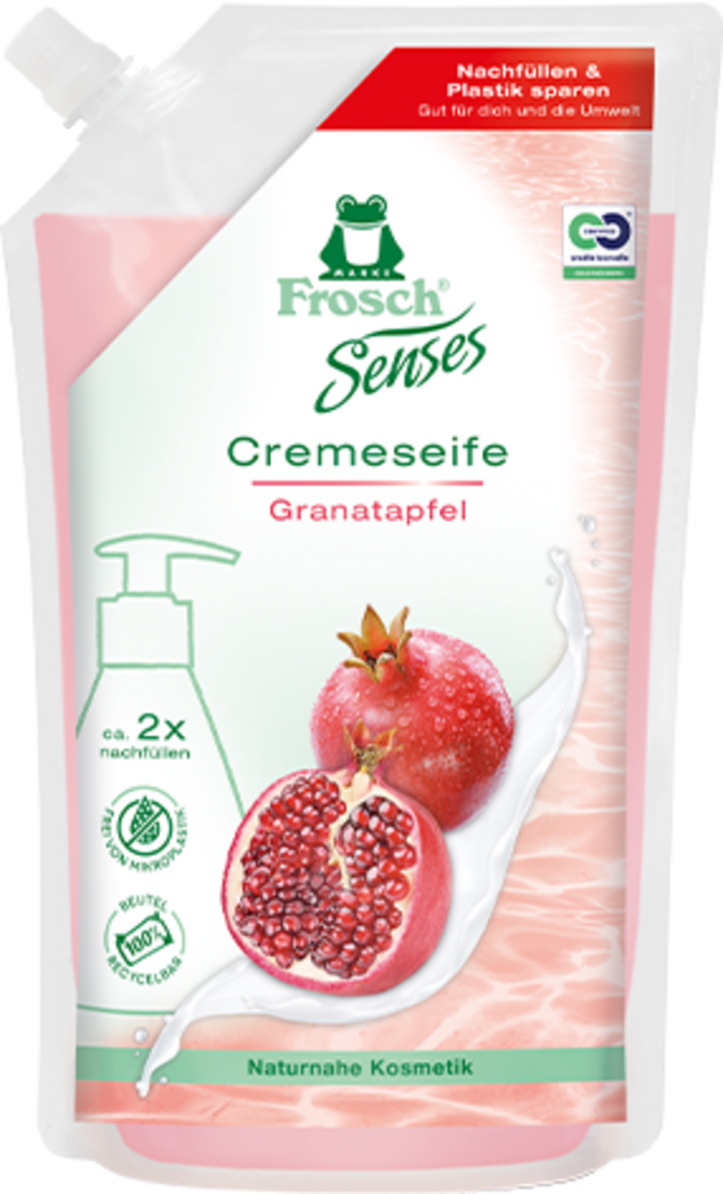 With the Frosch liquid soap refill bag, you can replenish your hand soap while reducing packaging waste. This 100% recyclable refill bag generates less waste compared to purchasing a new plastic soap dispenser, making it an eco-friendly choice.