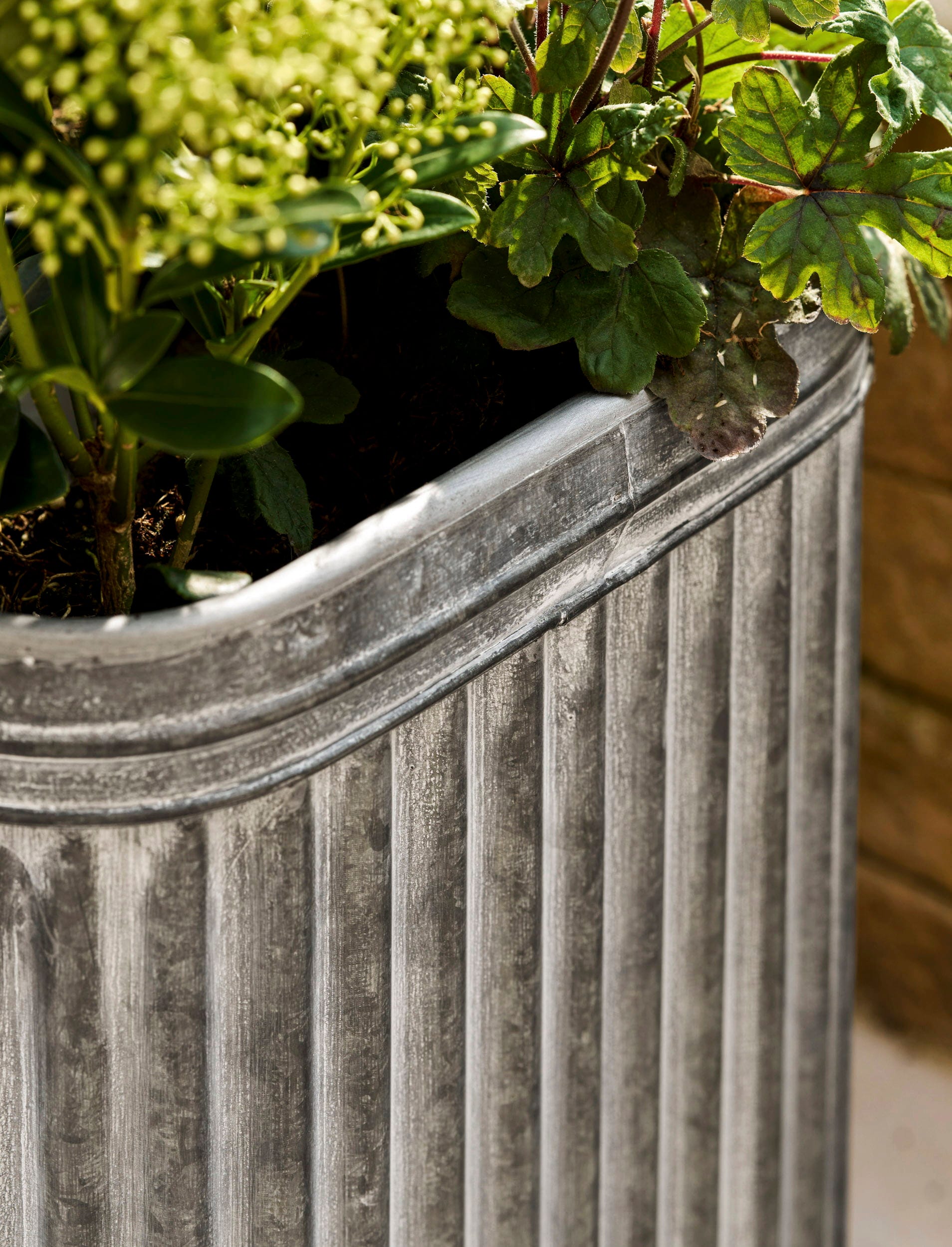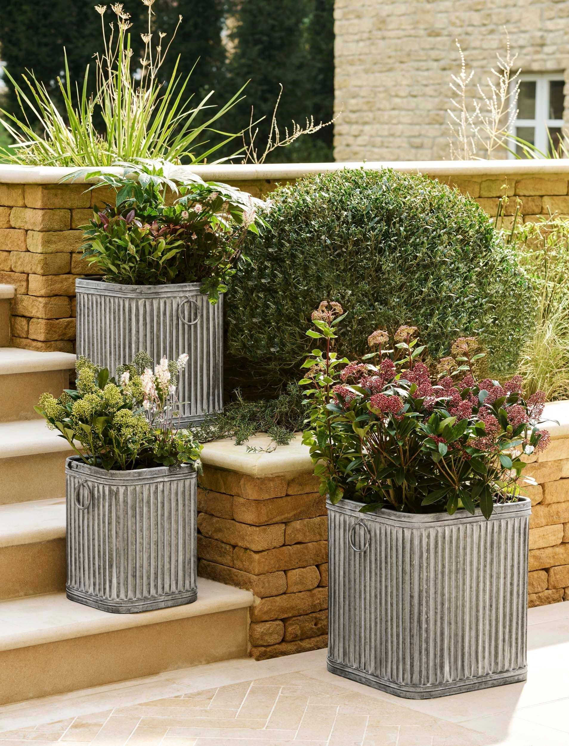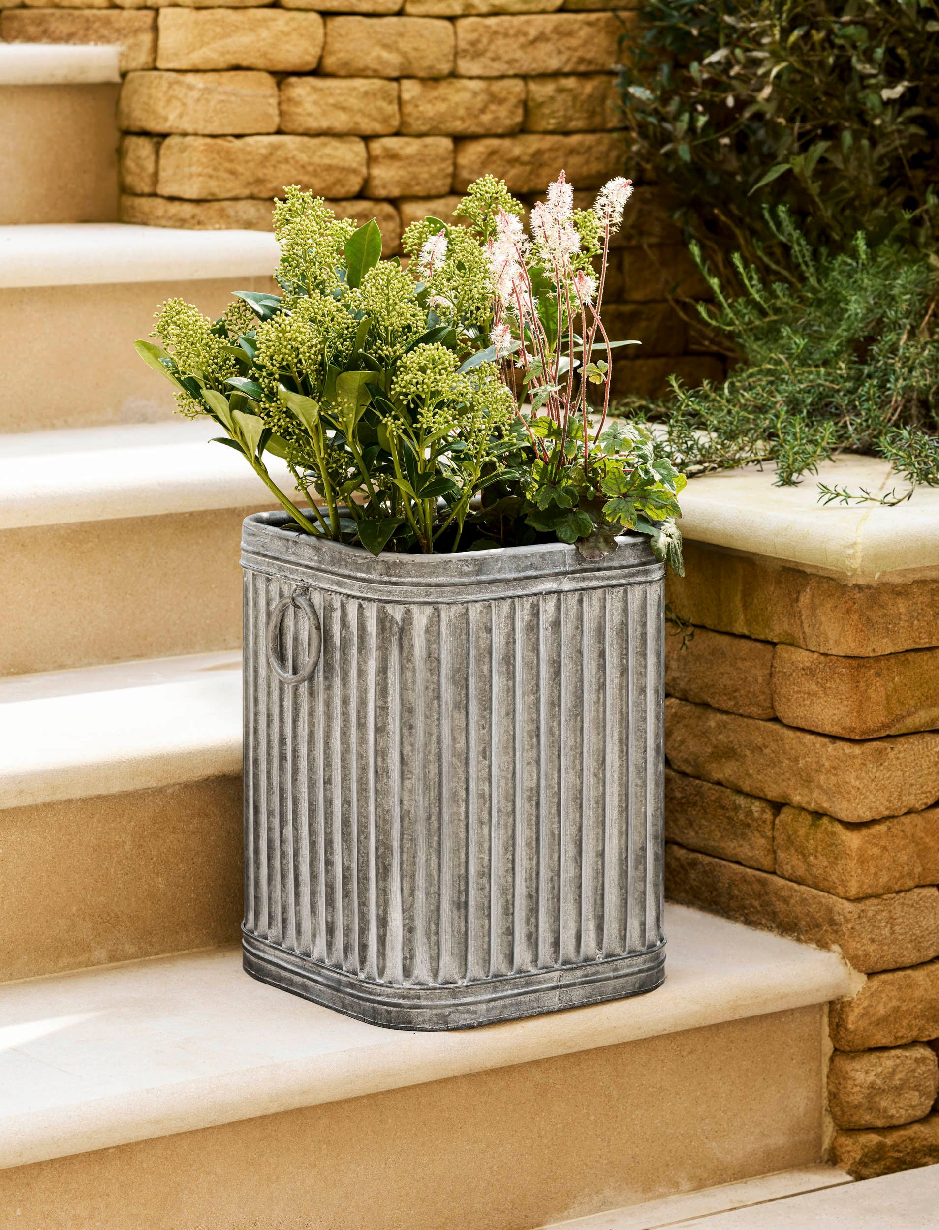 With its clean lines, square silhouette and robust construction, this planter in a cool industrial design is the ideal container for ferns, herbs or seasonal flowering plants.