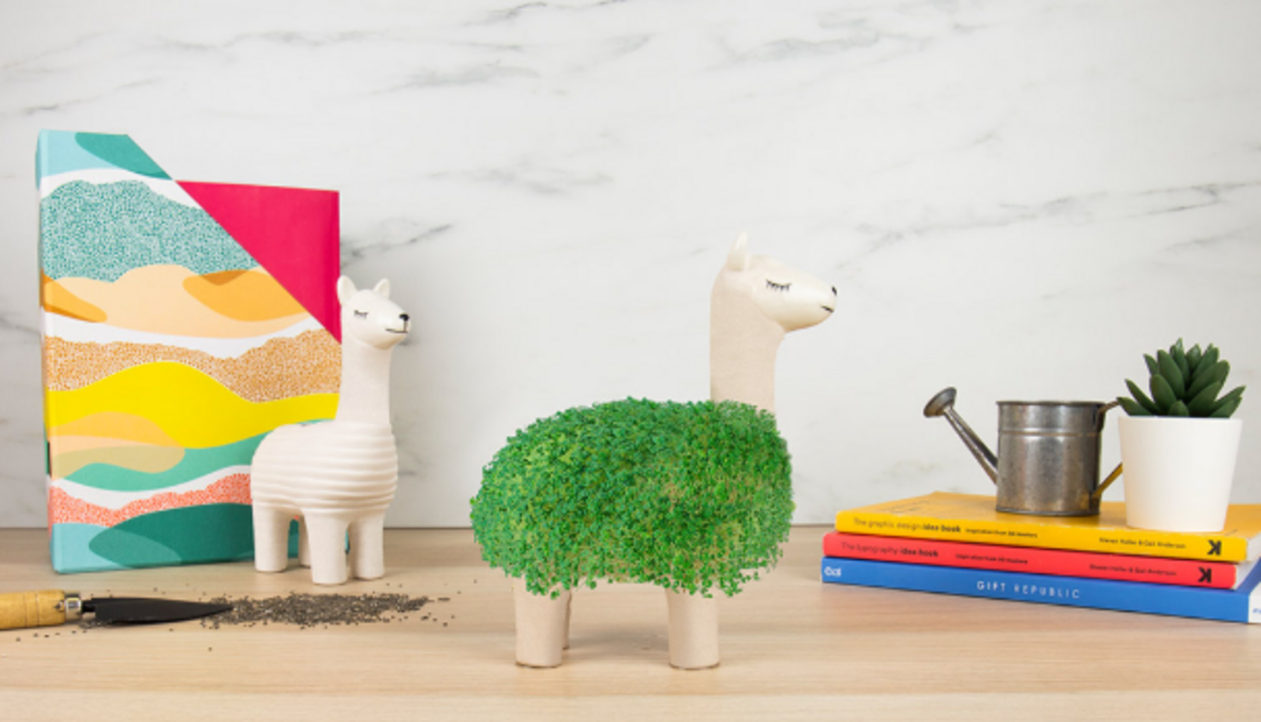 The adorable llama is just waiting to be sprinkled and watered with the included chia seeds. Add water and watch the little planter grow.