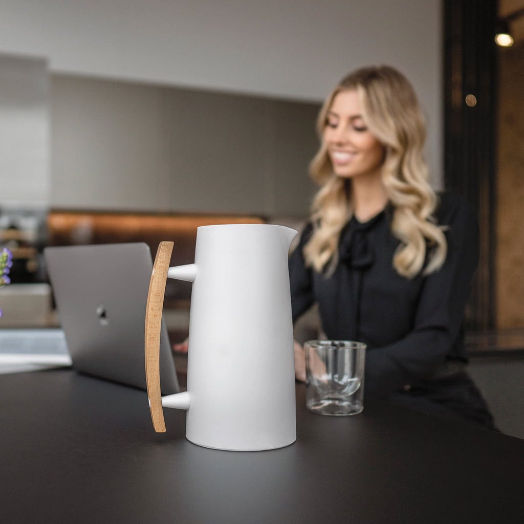 Thanks to the practical push system, the carafe opens and closes effortlessly, while the hermetic seal prevents leaks and maintains the perfect temperature. The wide opening makes filling easy, and a particular highlight is the elegant wooden handle – stylish and comfortable to hold. With a capacity of 1 litre, the Riviera 63 is the perfect everyday companion for any occasion.