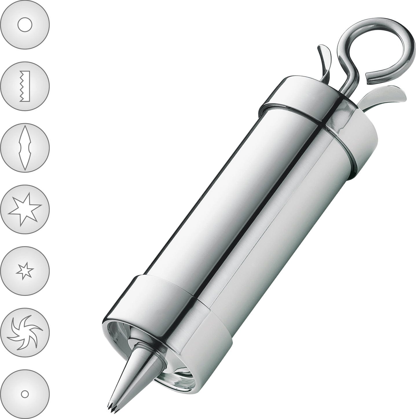 - 7 different nozzles (e.g. star, rose, leaves). Convenient handling thanks to quick filling & smooth-running press rod