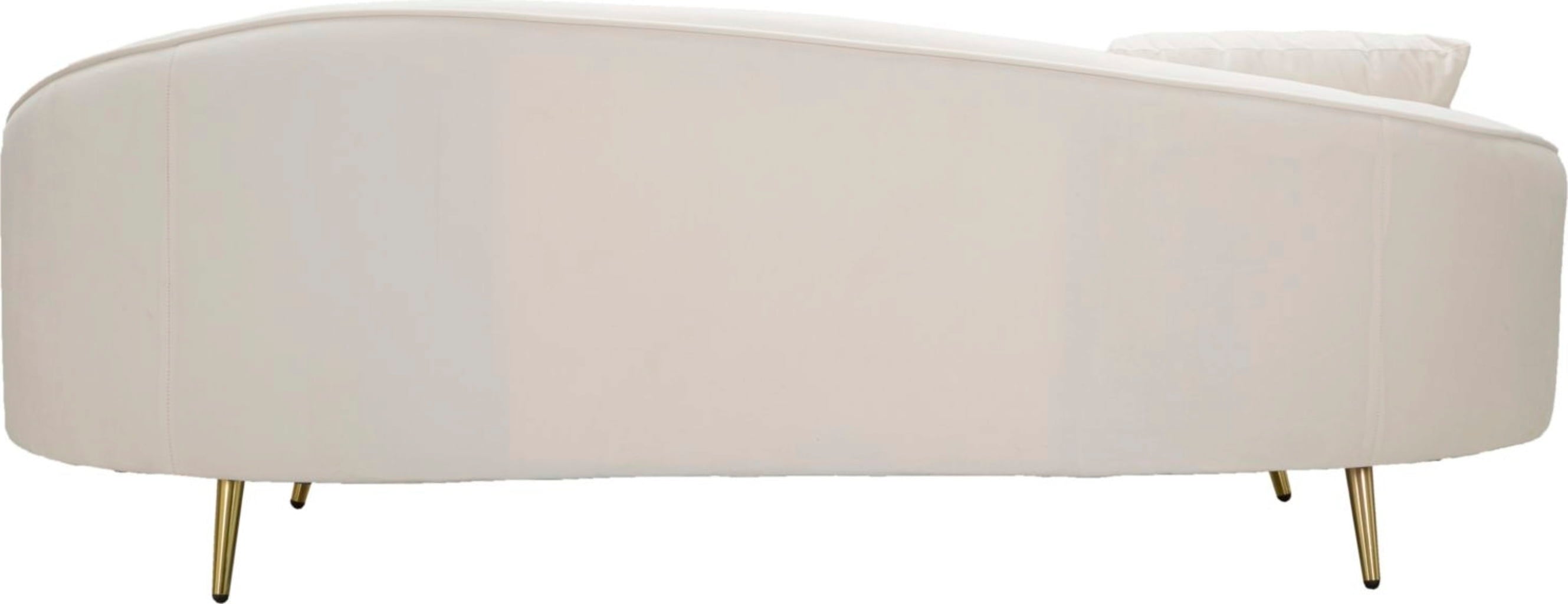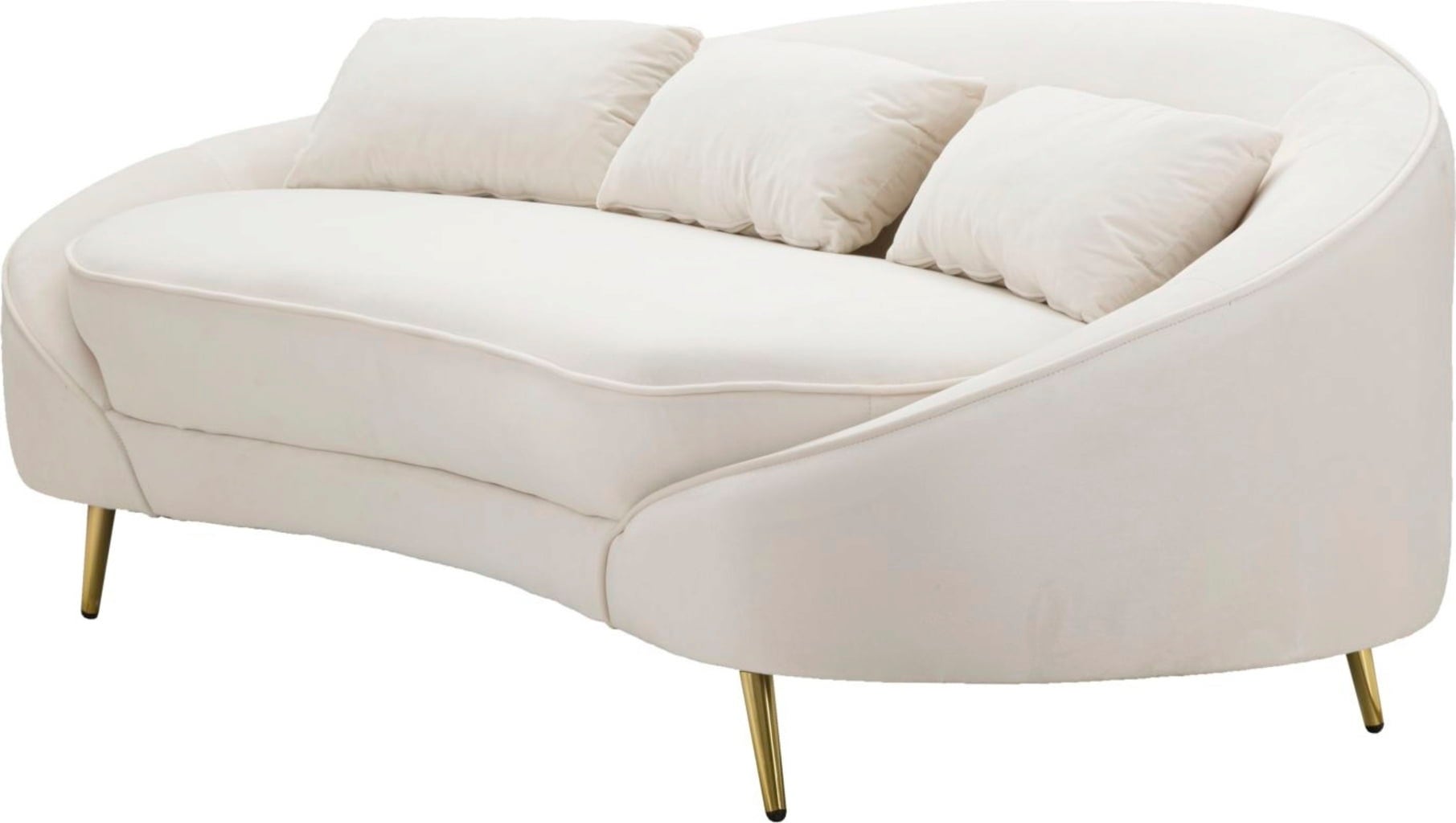 The contemporary design is perfectly complemented by sleek, shiny gold metal legs that give the sofa a modern touch and glamour. Three matching cushions are included to round off the high level of seating comfort. This sofa is the ideal addition to modern, bright interiors that emphasise design, comfort and an airy atmosphere.