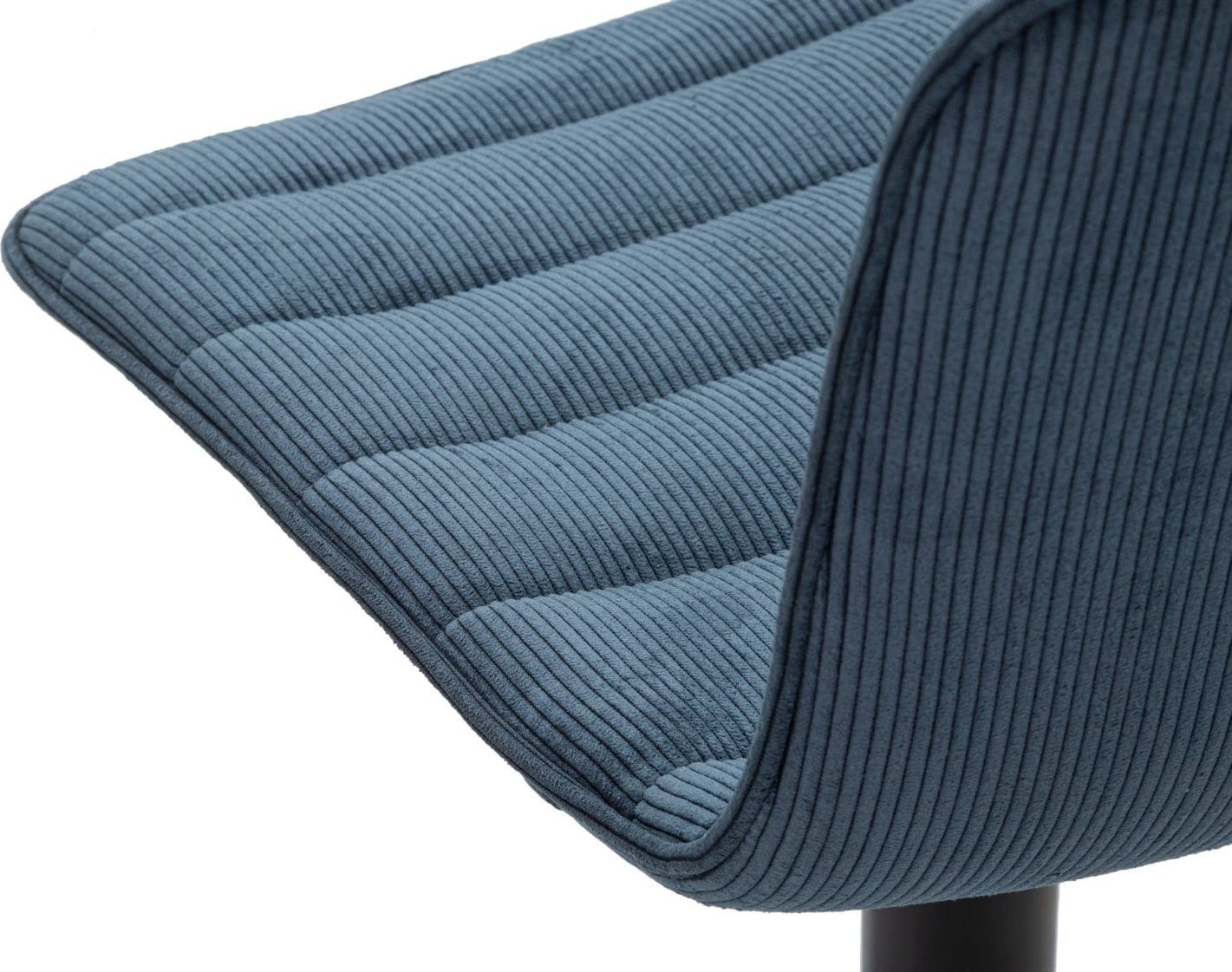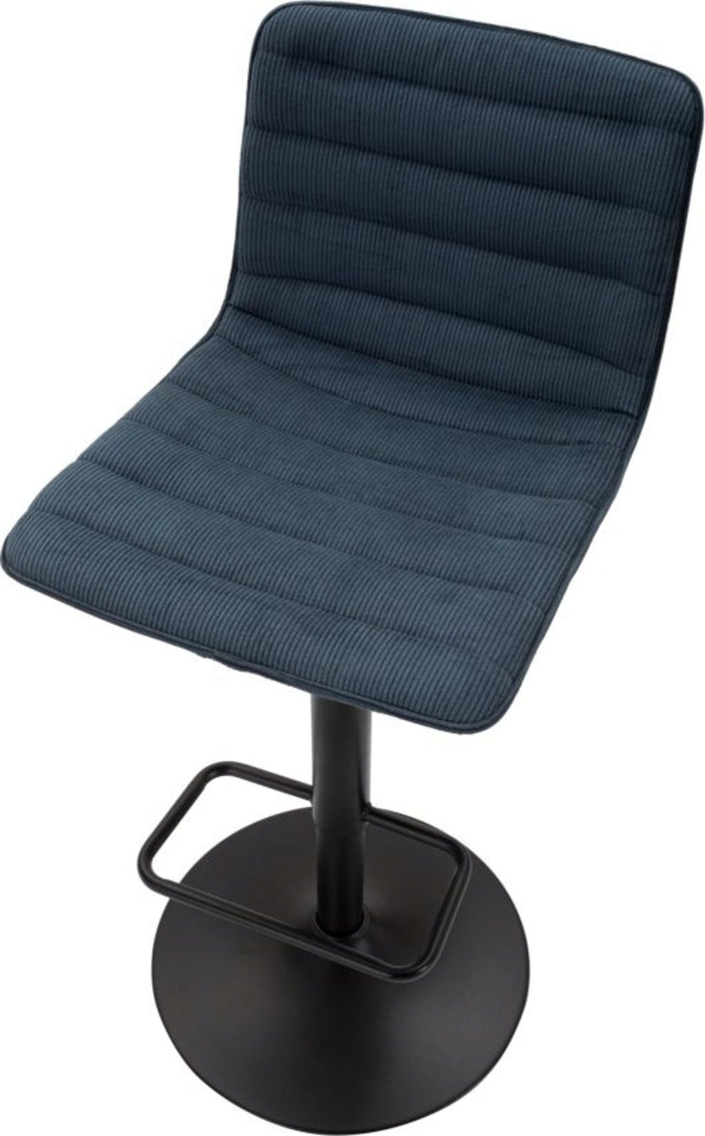 The textured fabric cover in a chic navy blue gives your interior a fresh, inviting touch, while the robust black metal frame ensures stability and durability. Thanks to the integrated height adjustment and the practical, all-round footrest, the stools adapt perfectly to any counter height. Whether for a cozy breakfast or a drink in the evening – this set combines nostalgic charm with modern comfort!