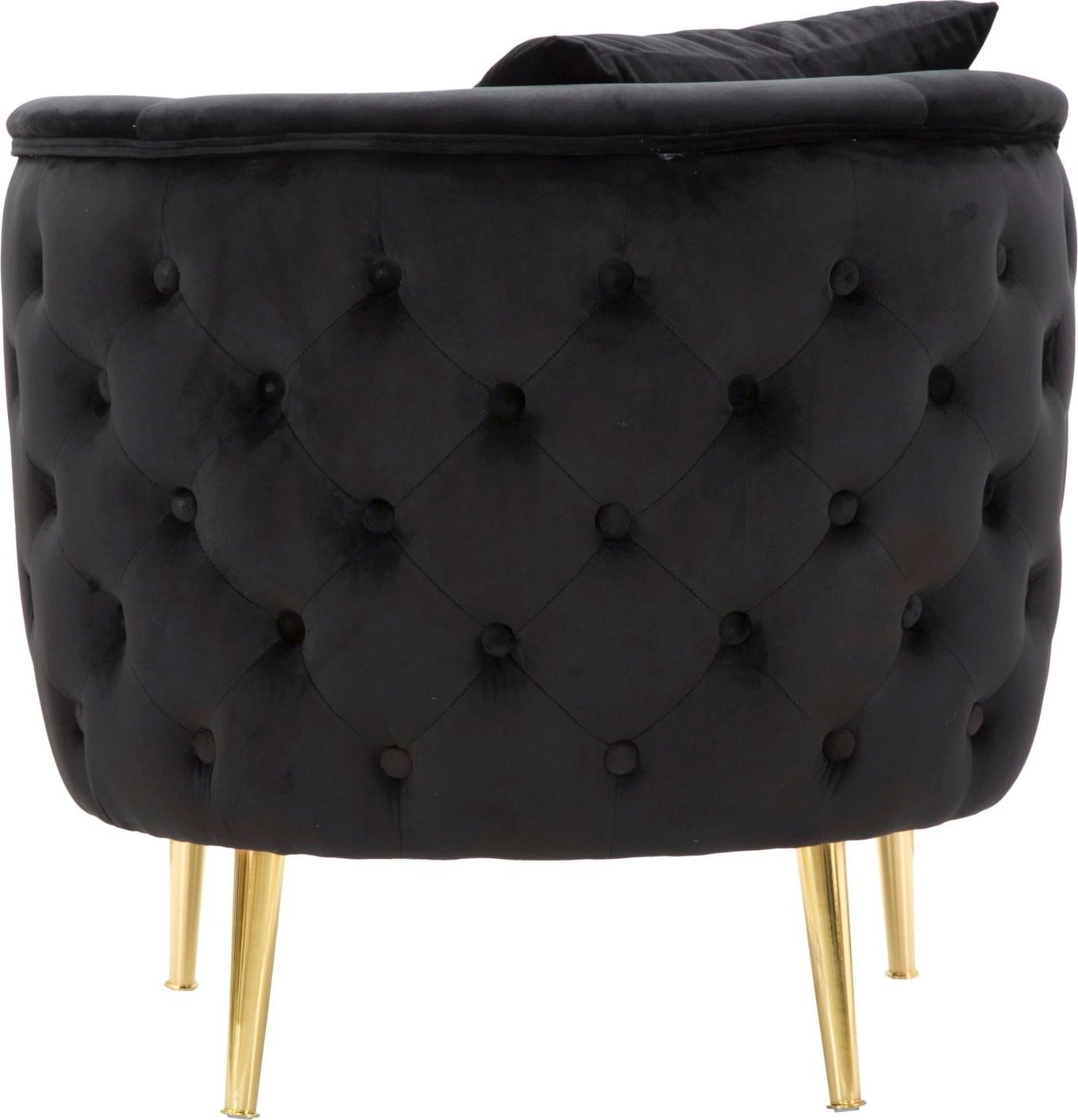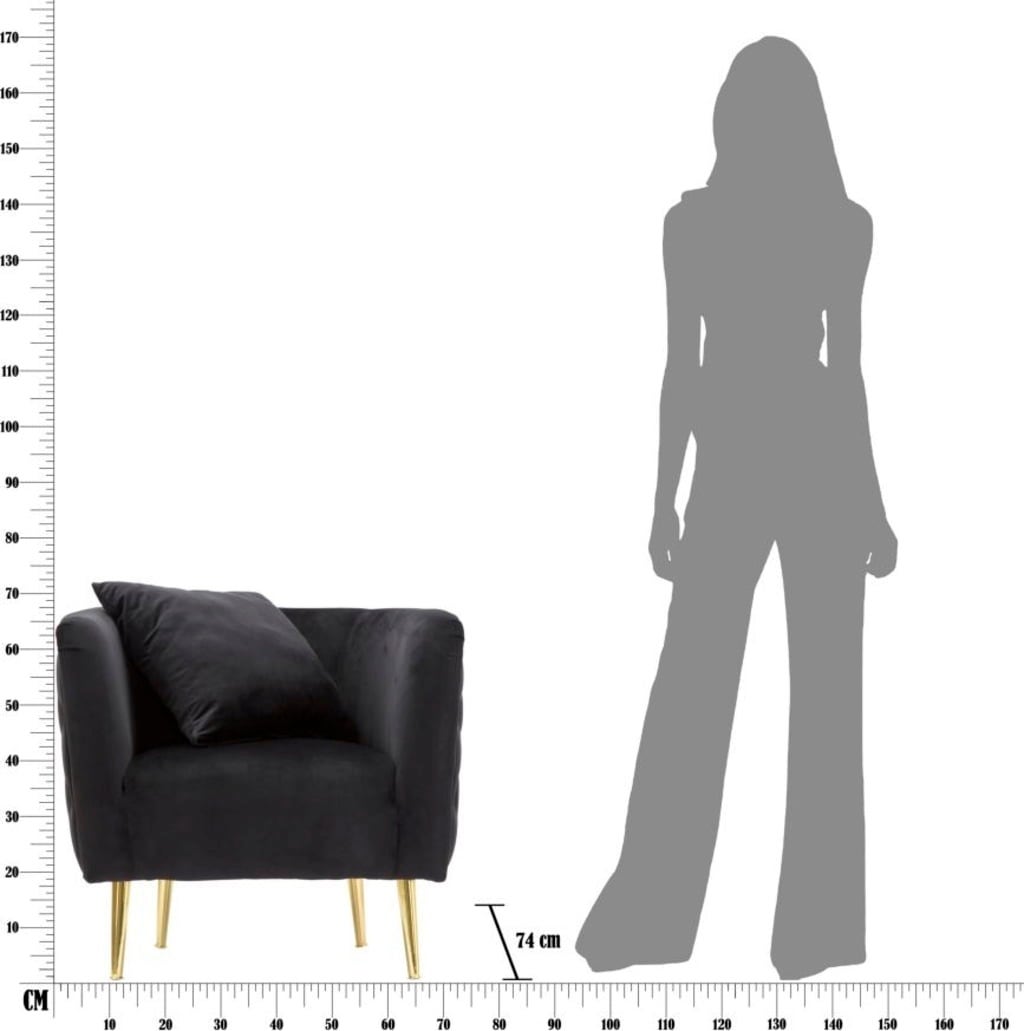 The elegance of the armchair is underlined by the slim, golden metal legs, which create a modern, glamorous contrast to the colour. A matching back cushion is included. Ideal as an eye-catcher in the living room or for a cosy reading corner.