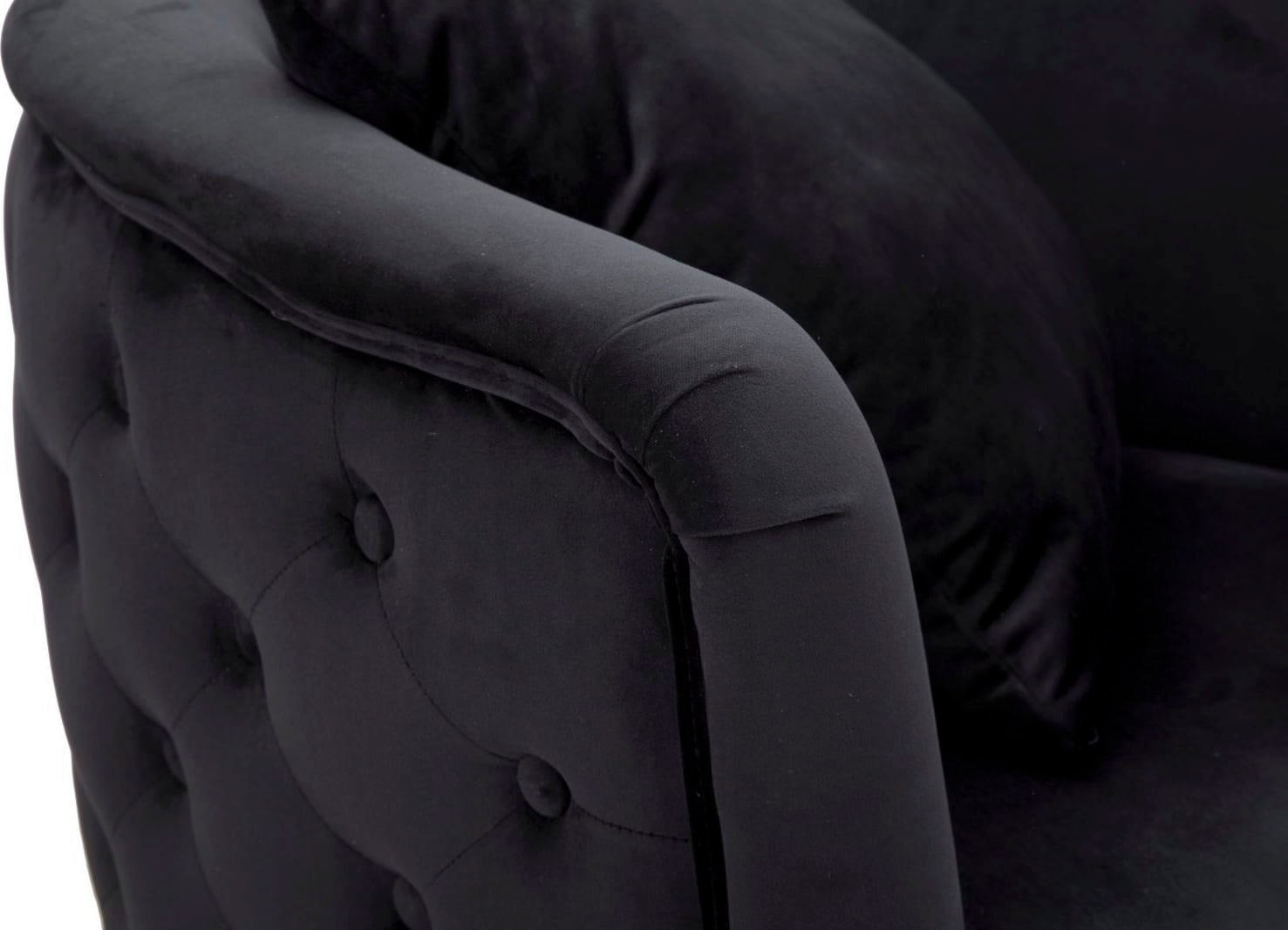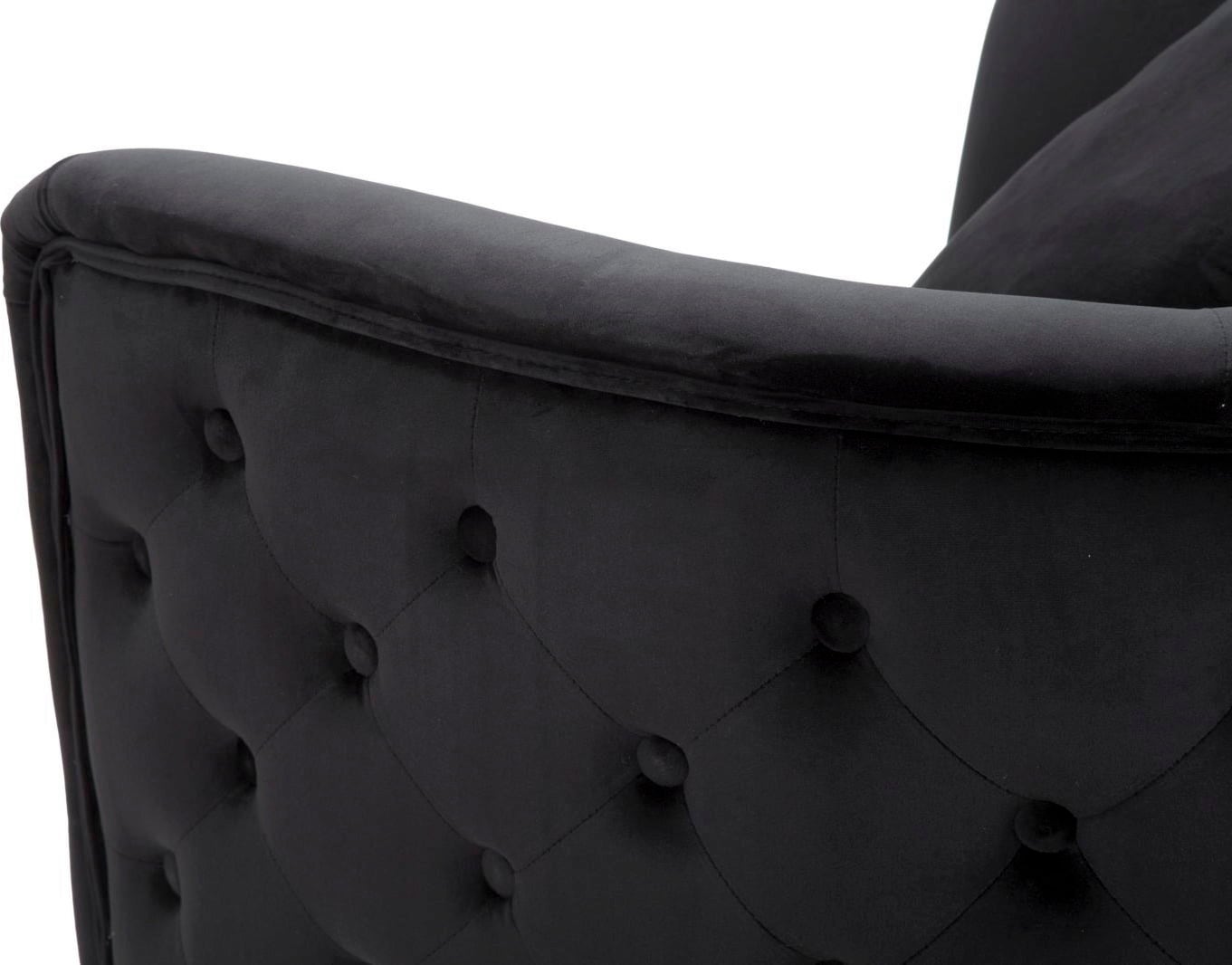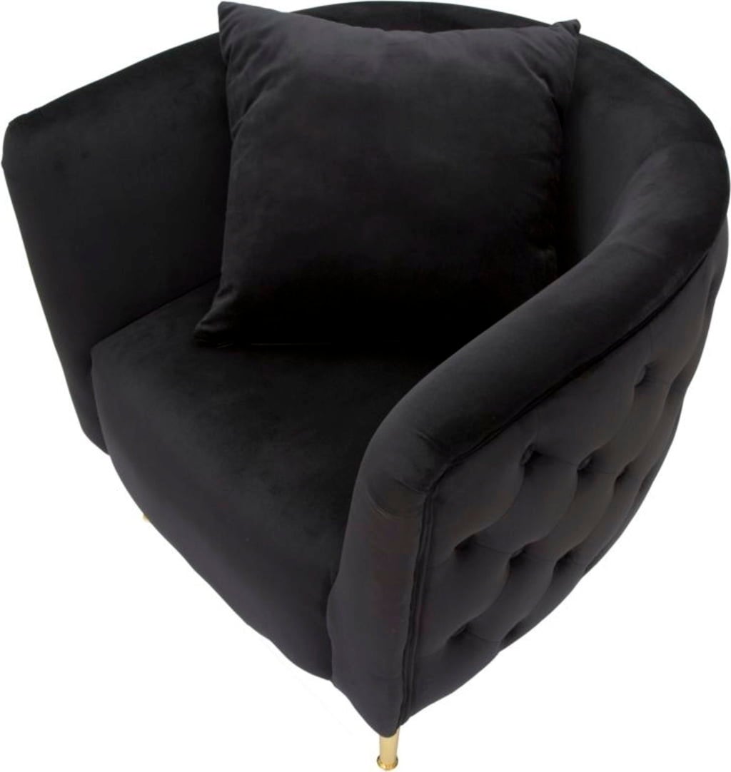 Give your room a stylish touch and maximum comfort with this elegant upholstered armchair. It is upholstered in a luxurious black velour fabric. Thanks to its voluminous shape and comfortable armrests, it offers an ideal place to relax.