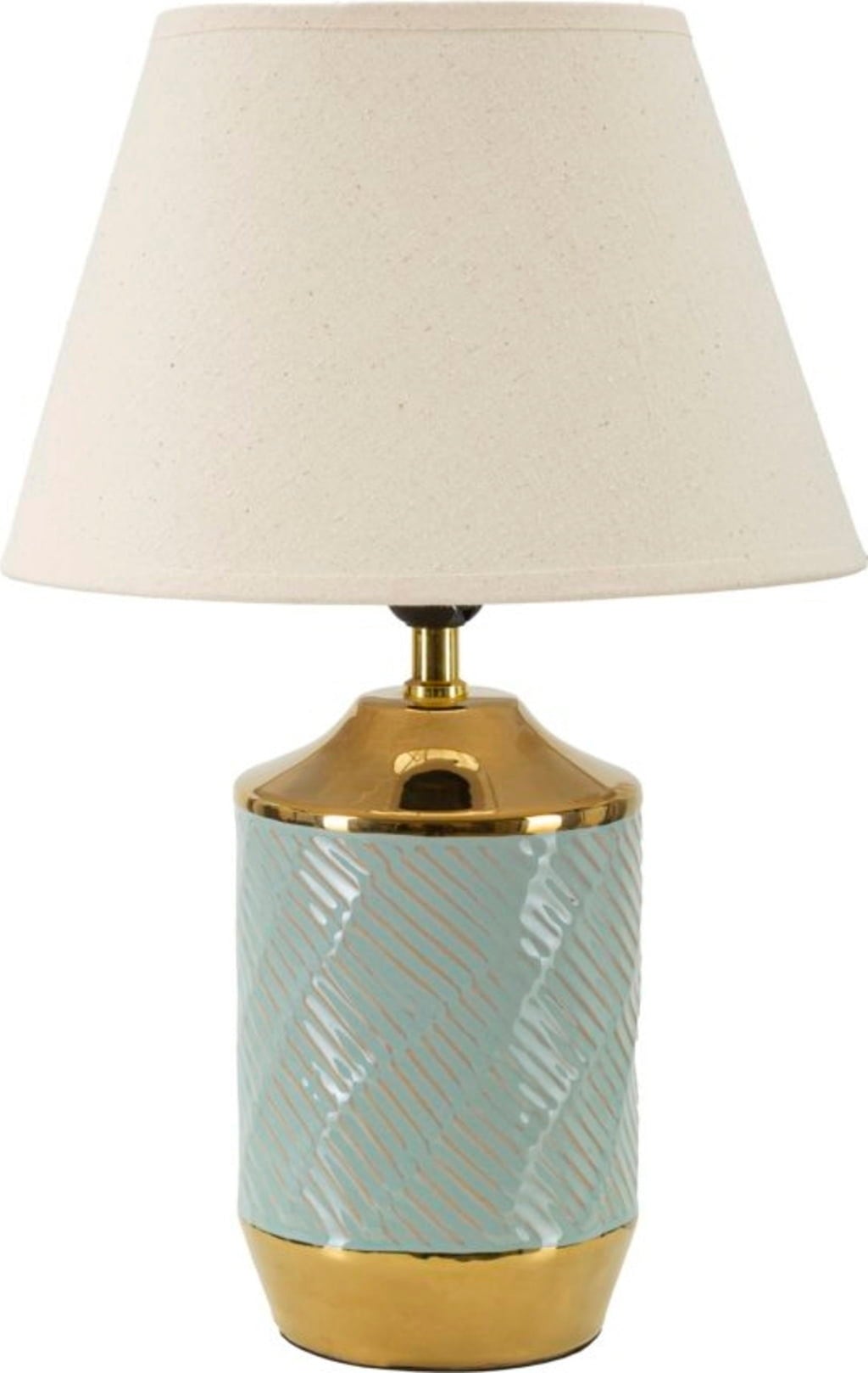 Give your room a fresh yet luxurious atmosphere with this elegant table lamp. The body, made of high-quality ceramic in a delicate light blue, brings a calming lightness to your home. The simple design is glamorously emphasised by shiny, golden accents on the base and neck of the lamp.